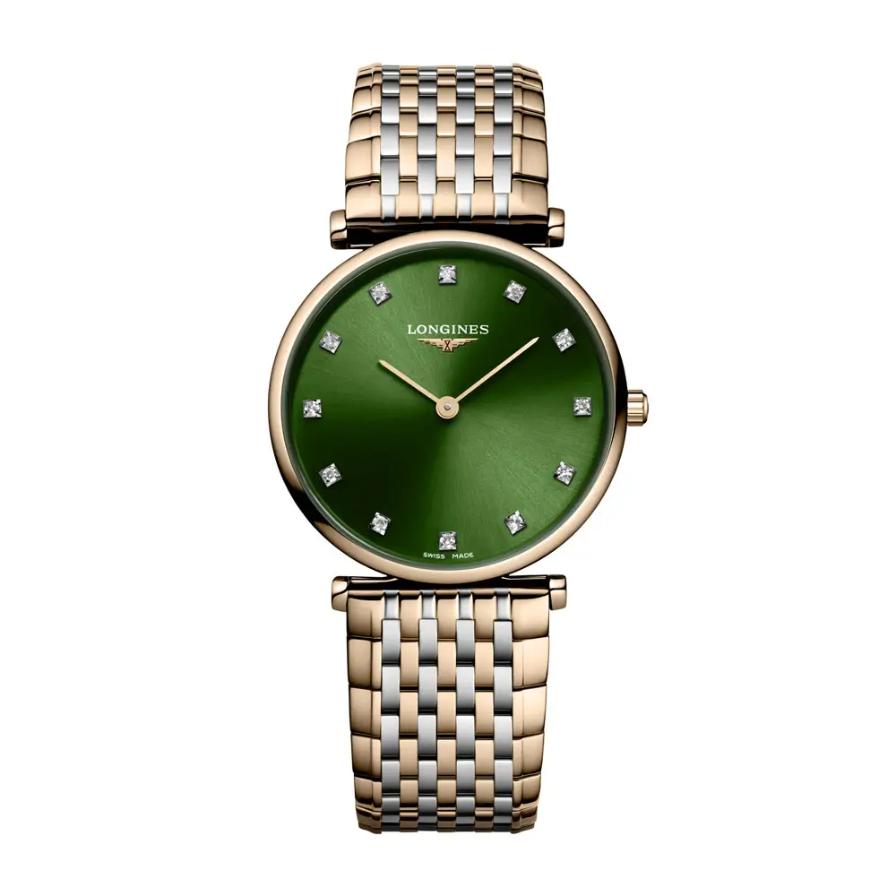 Inside ticks the reliable quartz caliber L420, ensuring Swiss precision and carefree performance. The watch is completed with a stainless steel bracelet coated in red PVD and a triple safety folding clasp, guaranteeing both comfort and security. A model that perfectly reflects the Longines philosophy – tradition, grace, and attention to detail.