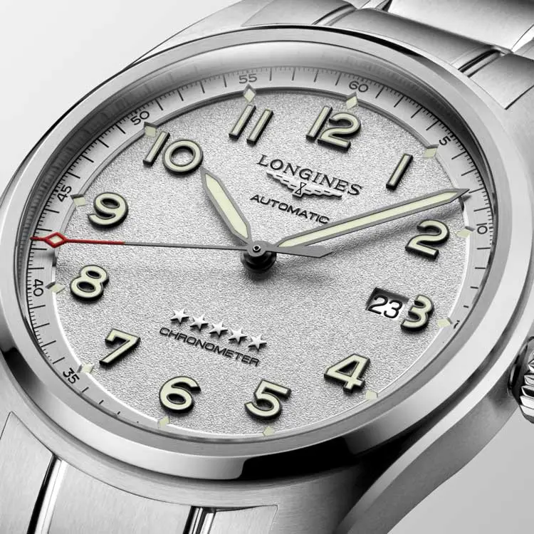 Water-resistant to 100 meters (10 bar), the watch is fitted with a stainless steel bracelet with a triple safety folding clasp. The Longines Spirit L3.811.4.73.6 is the perfect choice for those seeking a blend of robustness, precision, and refined style.