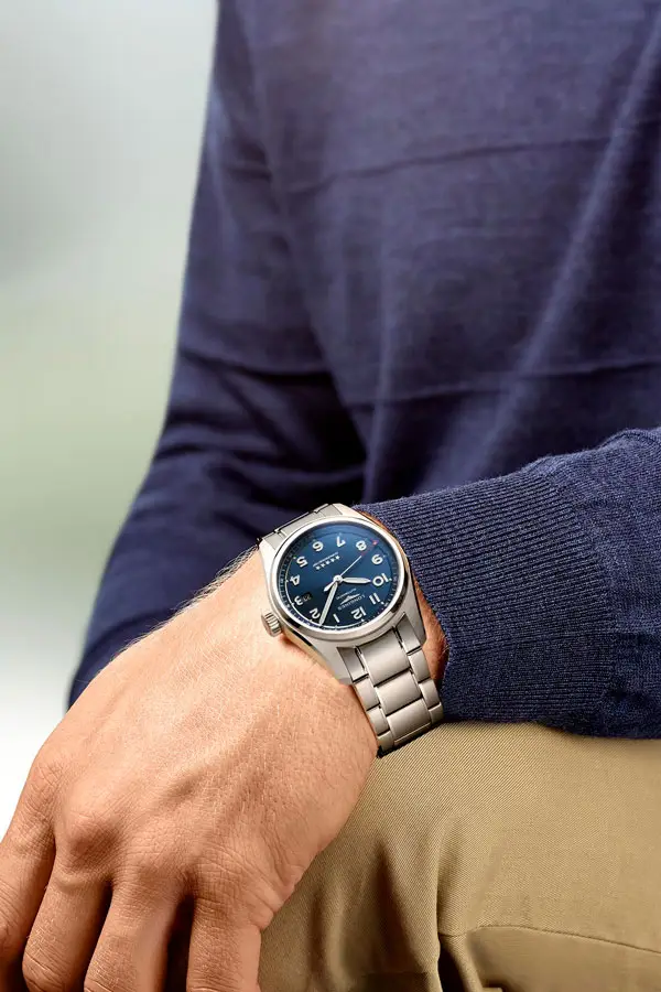 At its heart is the automatic caliber L888.4 with a 72-hour power reserve and an innovative silicon balance spring, enhancing resistance to magnetism and ensuring remarkable precision. The sunray blue dial features luminous Arabic numerals, elegant hands, and a practical date window at 3 o’clock.