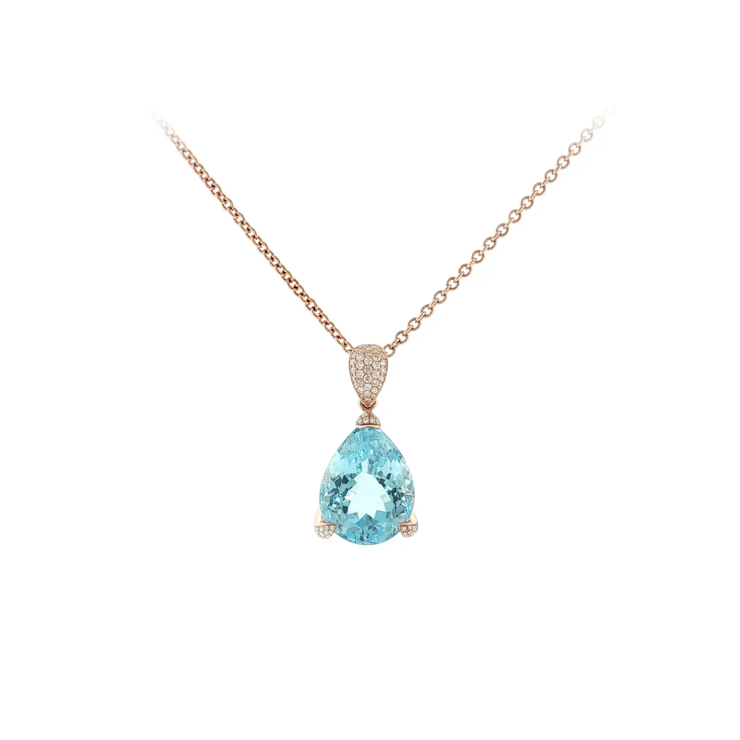 Luxury Necklace with Blue Topaz and Diamonds in Rose Gold