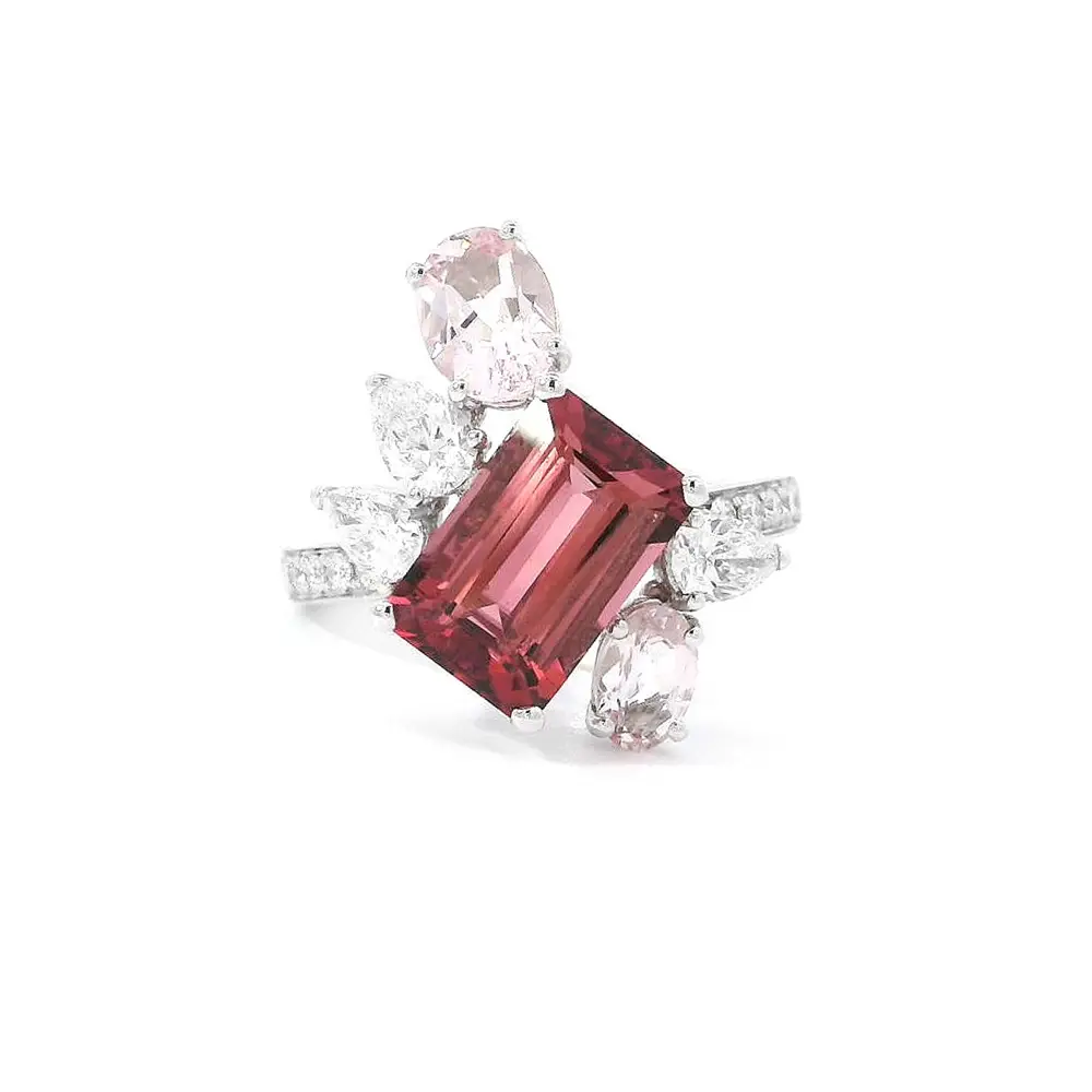 Luxury Tourmaline Ring Decorated with Morganites and Diamonds