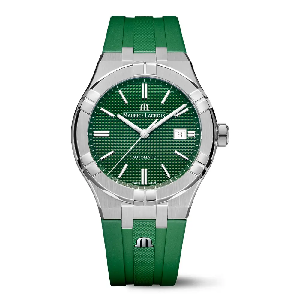 The Maurice Lacroix Aikon Automatic 42mm AI6008-SS000-630-5 perfectly blends modern elegance, sporty character, and Swiss watchmaking precision. With striking green accents, this timepiece is as functional as it is stylish.