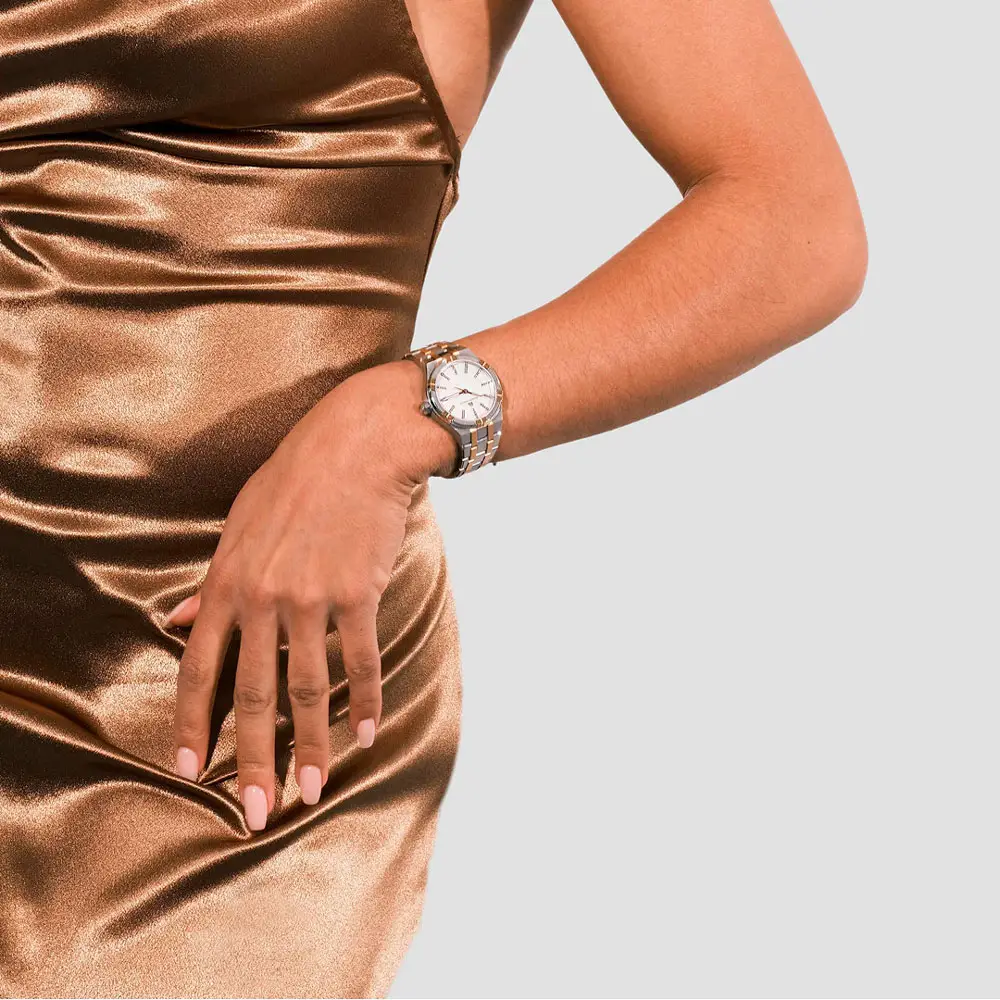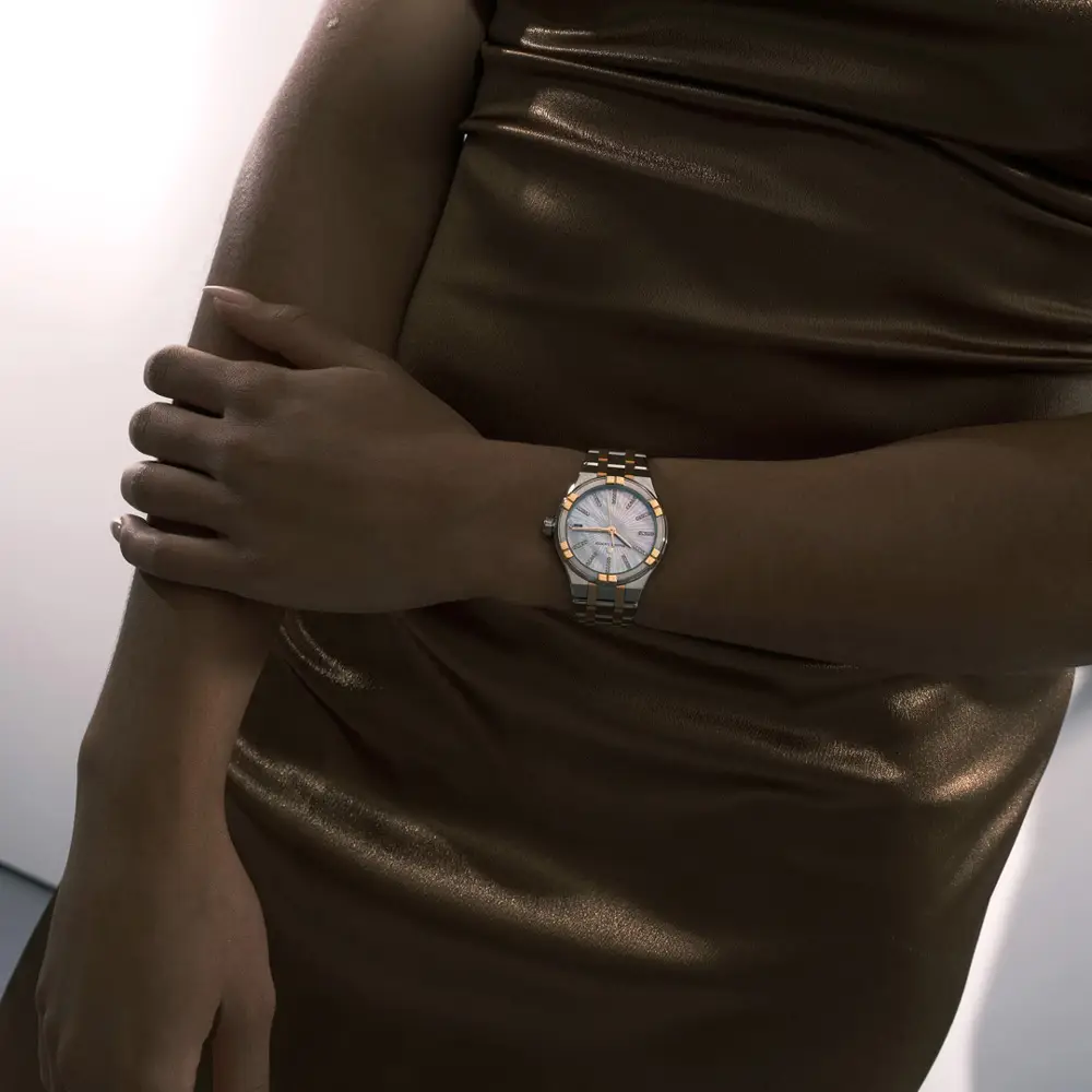 Inside beats the Swiss quartz calibre Ronda 515, renowned for its accuracy and maintenance-free reliability. Completing the timepiece is a two-tone steel and rose gold bracelet with butterfly clasp and an “Easy Change” system for quick strap swaps. With 100 m (10 ATM) water resistance, the Aikon Quartz Date is perfect for women seeking modern luxury, everyday functionality, and timeless beauty.
