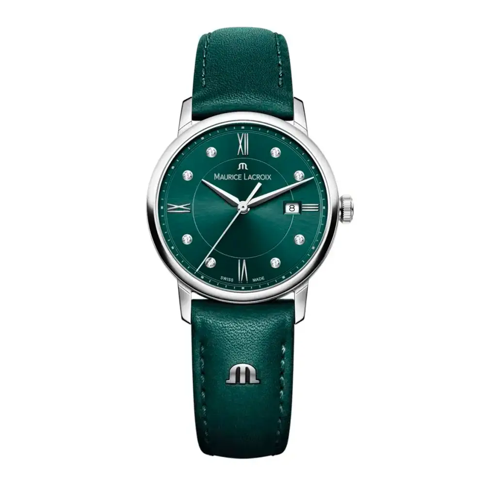 The Maurice Lacroix Eliros Date 30mm (ref. EL1094-SS001-650-5) perfectly combines elegance, modern design, and Swiss precision. Its 30 mm stainless steel case features soft lines and an ideal size for a woman’s wrist, offering a refined and contemporary look.