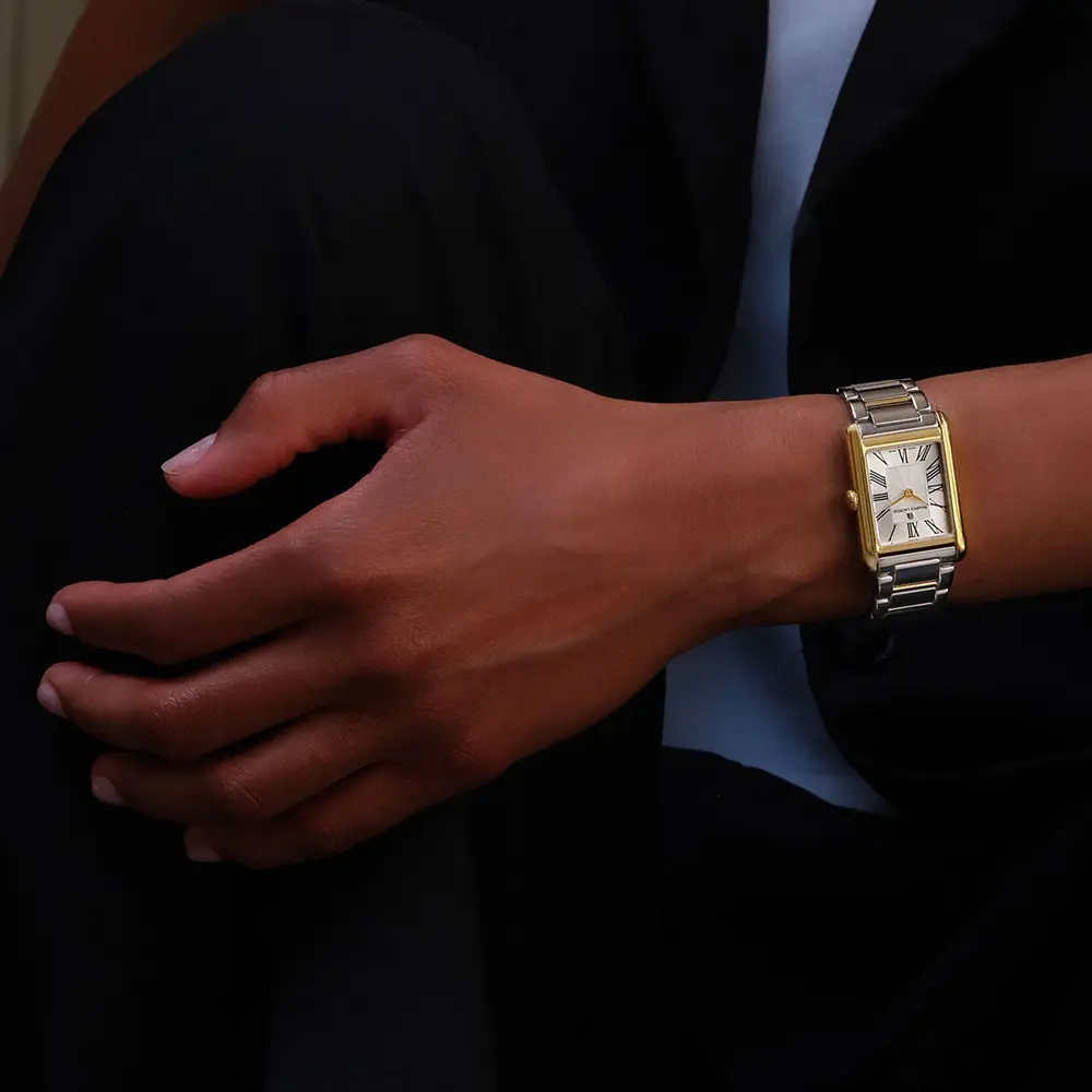 The model is completed with a stainless steel bracelet with gold PVD coating and butterfly clasp, ensuring comfortable and secure wear. Thanks to the elegant square case, slim profile and Swiss Made quality, it is an ideal accessory for women looking for a stylish watch suitable for everyday wear as well as formal occasions.