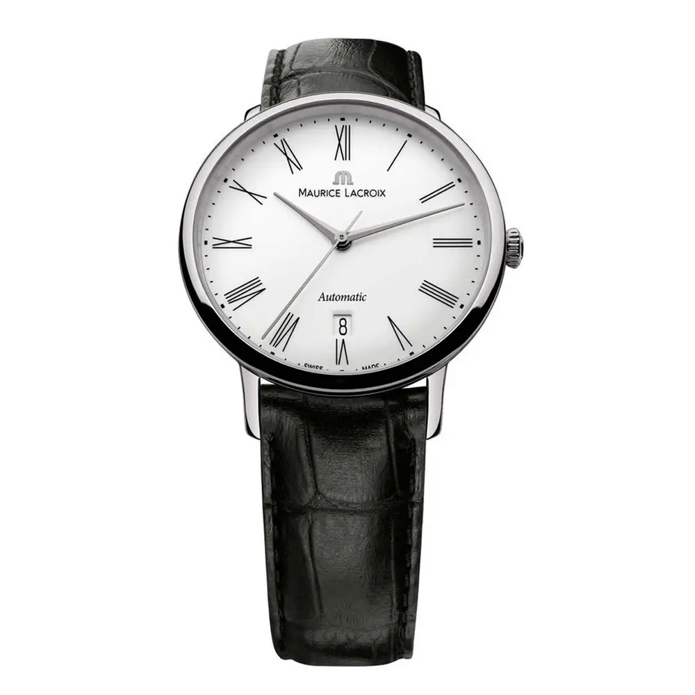The Les Classiques Tradition model by Maurice Lacroix embodies classic aesthetics and masterful craftsmanship. Its 38 mm round stainless steel case is perfectly balanced for daily wear while retaining a sophisticated character for formal occasions. The sapphire crystal ensures excellent scratch resistance and protects the elegant white analog dial, which features slim hands and a subtle date display at 3 o’clock.