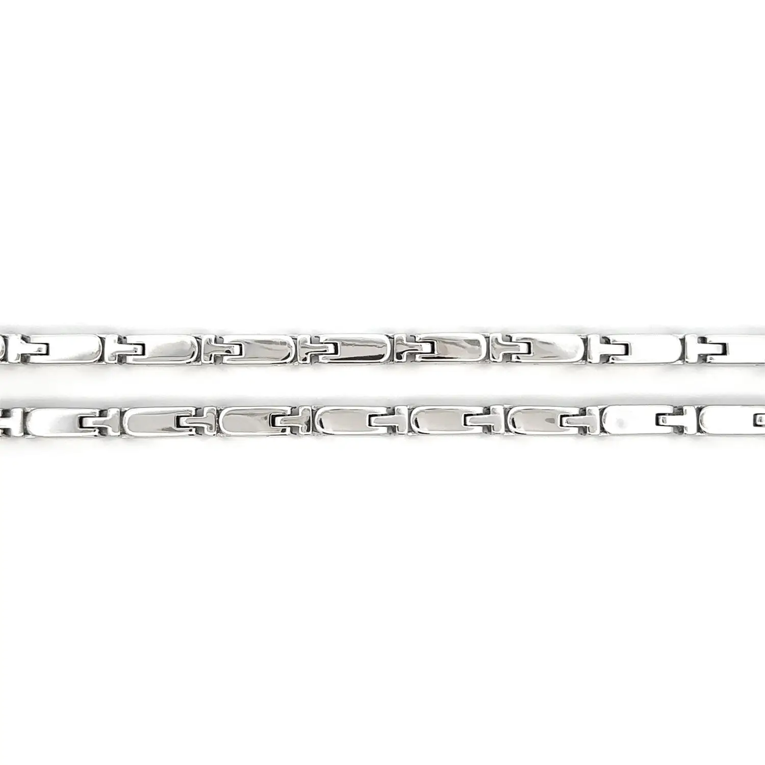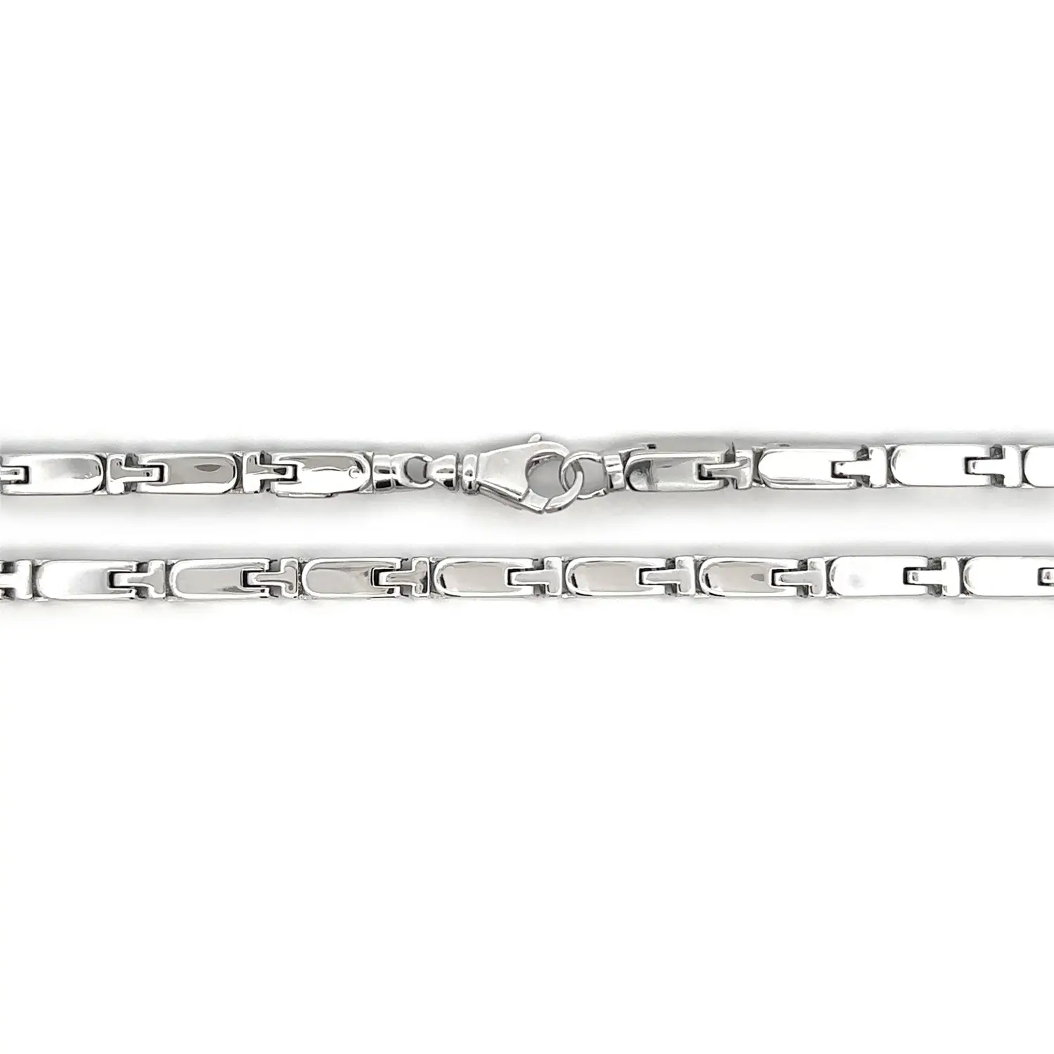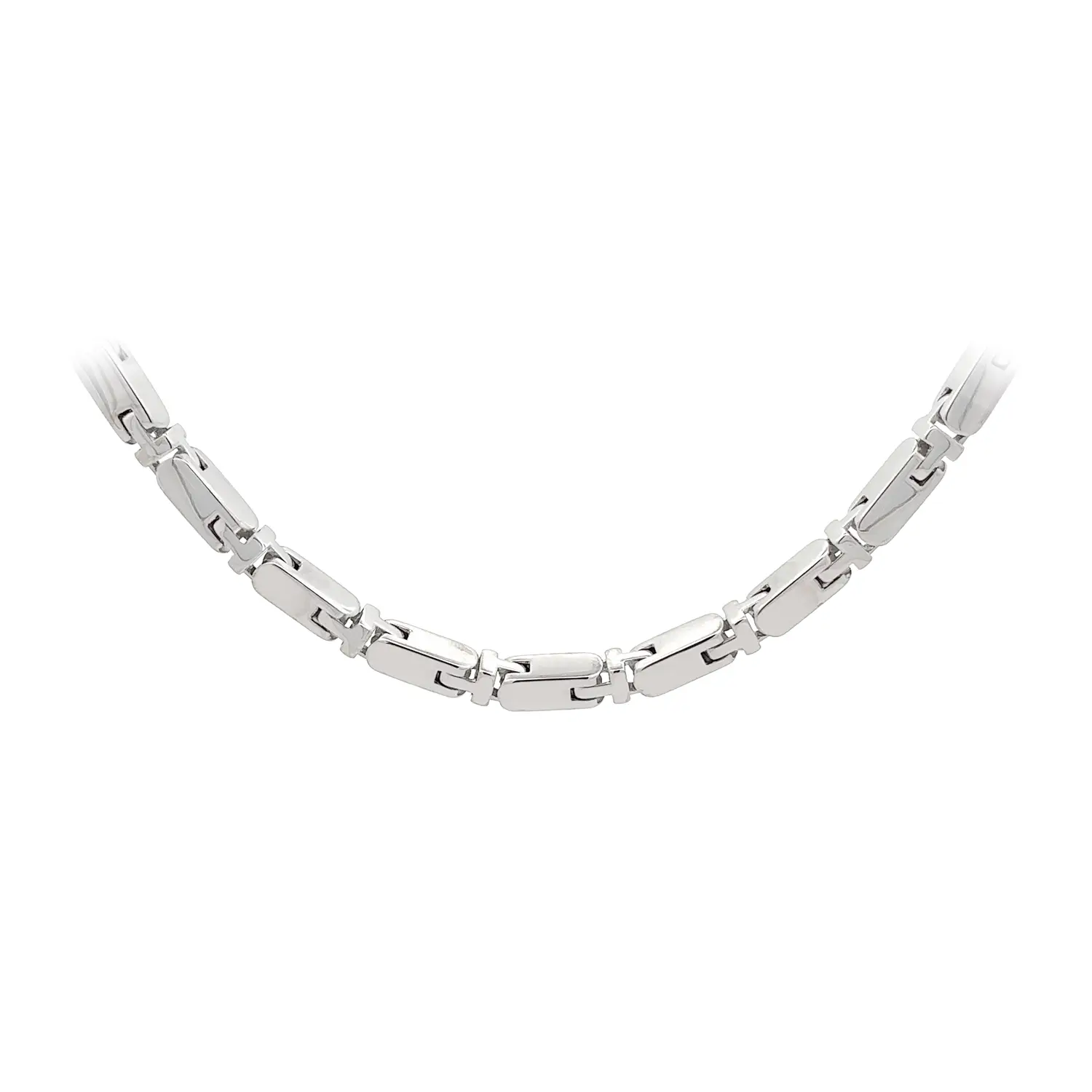 This men’s chain made of 14K white gold features a precisely crafted link design that combines a modern look with timeless elegance. Its smooth, high-polish surface gives the piece a luxurious character and makes it easy to pair with other accessories.