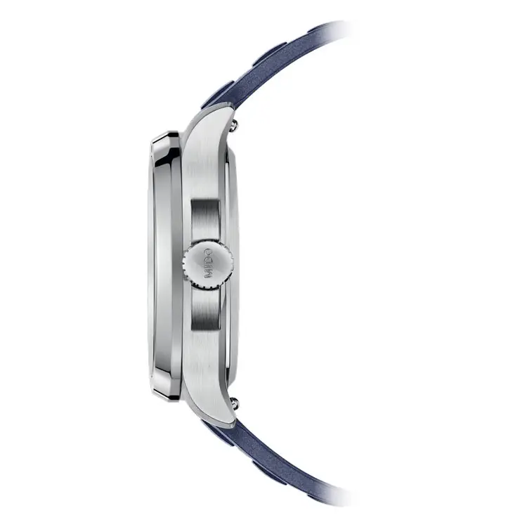 The watch offers 100 m (10 bar) water resistance and comes on a blue rubber strap with a quick-release system. A combination of retro design, technical excellence, and Swiss Made quality makes the Multifort TV Big Date a stylish everyday companion.