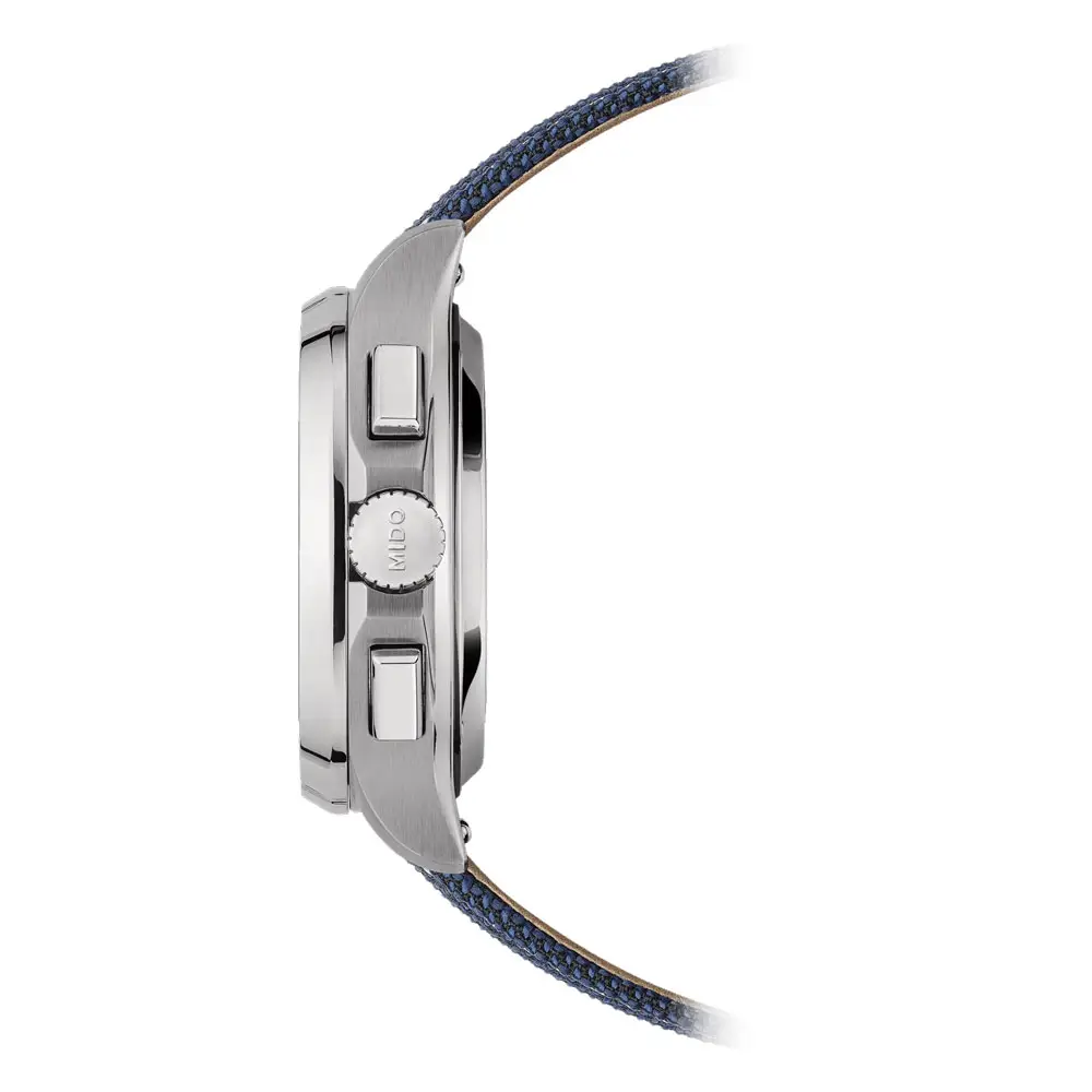Inside, the automatic Caliber 60 works with an innovative Nivachron™ magnetism-resistant spring and a power reserve of up to 60 hours. The watch offers chronograph, small seconds and date display functions, while the precision operation and Swiss craftsmanship reflect Mido's watchmaking expertise.