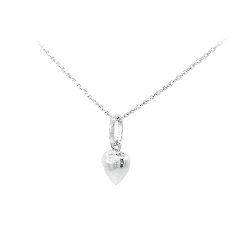 This elegant heart-shaped pendant is crafted from 14-karat white gold (585/1000) and represents a timeless symbol of love, devotion, and delicate femininity. Its smooth, highly polished surface reflects light with a subtle sheen, combining refinement with a modern aesthetic. Thanks to its minimalist design, free of unnecessary embellishments, it’s perfect for everyday wear yet equally suitable for formal occasions.