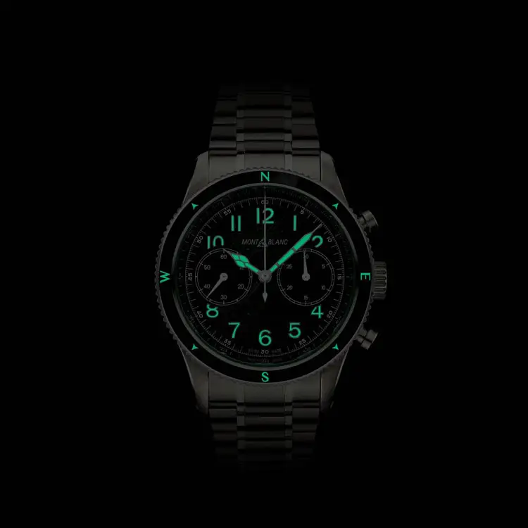 Typical features of the collection include bronze or steel cases, distinctive cathedral hands, railroad minute scales, and dials with a warm retro tone - often in green, brown or blue. Inside we find mechanical Montblanc calibres, including in-house chronographs and monopusher movements from the Minerva workshops.