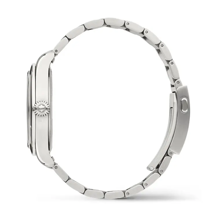 Inside ticks a reliable automatic mechanical movement with a power reserve of approximately 38 hours, operating at a frequency of 28,800 vph (4 Hz). With water resistance up to 100 meters (10 ATM), the watch is suitable for everyday wear and outdoor adventures. The elegant silver-tone stainless steel bracelet with a folding clasp ensures secure and comfortable wear.