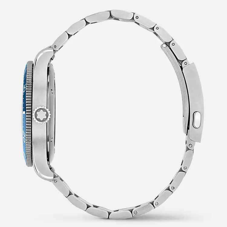 Designed for true adventurers, this model offers water resistance up to 300 meters (30 ATM), making it suitable for demanding diving expeditions. The silver-tone stainless steel bracelet with a folding clasp provides both comfort and security, whether you're heading underwater or navigating the urban jungle. The Montblanc 1858 Iced Sea in its blue edition strikes the perfect balance between performance, style, and originality.
