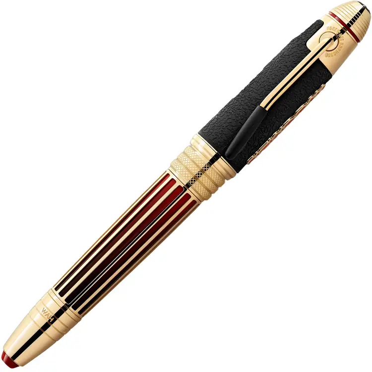 With dimensions of 148 × 17 mm, this rollerball pen exudes presence and refinement. The gold-coated clip gleams like the metallic strings of a guitar under stage lights, while the barrel finished in precious lacquer evokes the depth and rhythm of his timeless records. Every contour and engraving pays homage to the synergy between art, music, and craftsmanship.