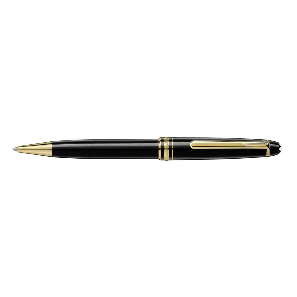 The iconic Montblanc Meisterstück Classique is a symbol of timeless elegance and master craftsmanship. Its body is crafted from precious black resin and complemented by gold-coated details, reflecting the refined style of this legendary collection.