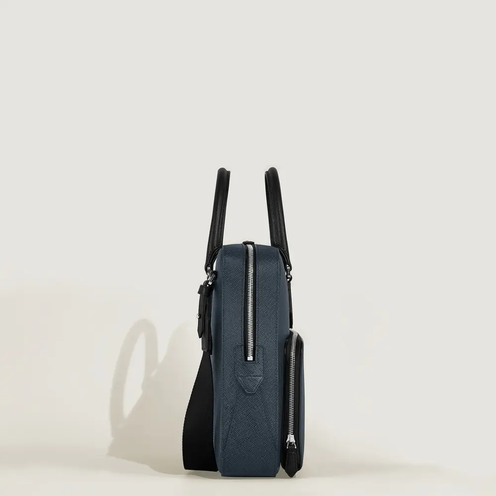 The Montblanc Sartorial Medium Document Case in elegant Tweed Blue blends modern style with a refined business aesthetic. Crafted from premium Saffiano-printed calf leather, it offers a luxurious look and exceptional durability, while minimalist lines and the iconic Montblanc emblem underline its sophisticated character. The spacious main compartment accommodates A4 documents, a 13' laptop, a tablet and all daily essentials.