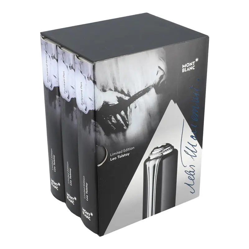 The Montblanc Writers Edition 2015 Leo Tolstoy Writing Set pays tribute to one of literature’s greatest minds. Crafted with elegance and precision, it captures the spirit of creativity and timeless sophistication that defines Montblanc.