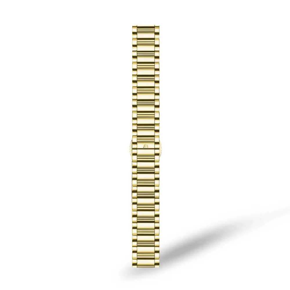 The silver dial with a decorative flinqué pattern and Roman numerals enhances the timeless character of the model. Protection is ensured by a sapphire crystal with anti-reflective coating, offering excellent scratch resistance and clear readability. The design is completed by a stainless steel bracelet with gold PVD finish and a comfortable butterfly clasp for secure wear.