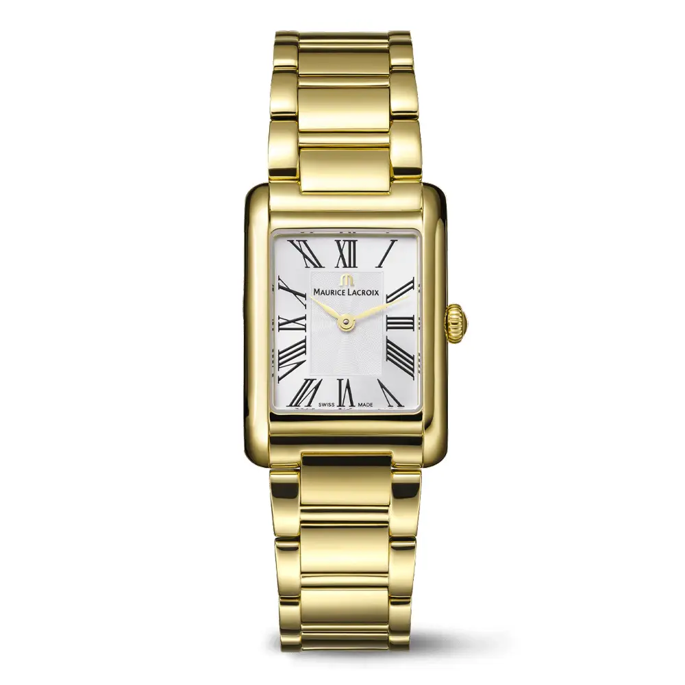 Ladies’ watches Maurice Lacroix Fiaba Square FA1205-PVY02-110-1 represent an elegant fusion of classic Swiss design and modern feminine aesthetics. The square case measuring 24 × 34 mm appears delicate and refined, while the yellow gold PVD coating adds a luxurious touch suitable for both everyday wear and formal occasions.