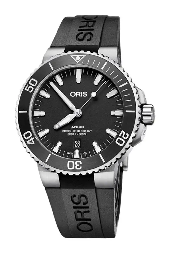 Oris Aquis is the brand's flagship diving collection that combines functionality, rugged construction and modern design. Designed for true underwater deployment, the Aquis collection offers water resistance up to 300 metres, a screw-down crown, unidirectional lunette and high resistance to shock and pressure.