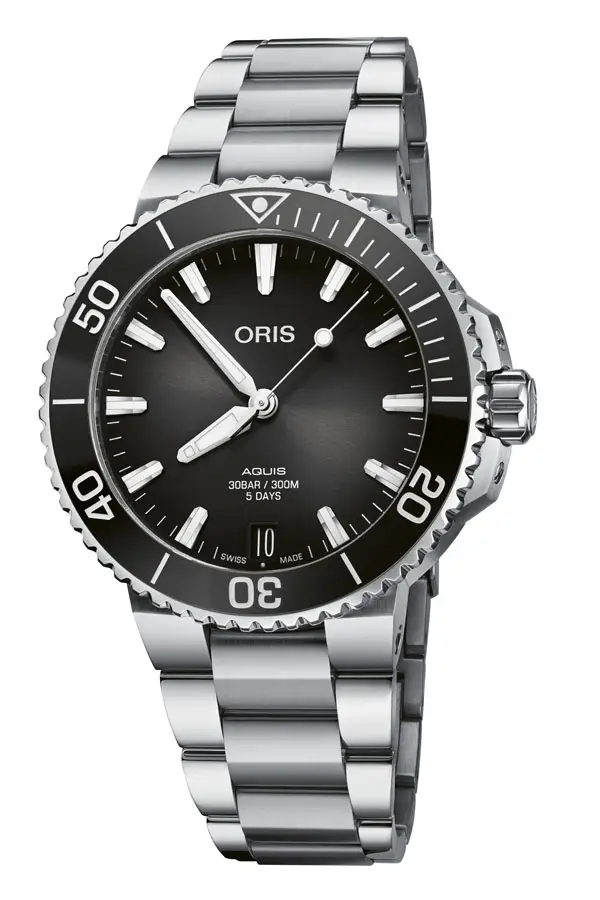 Oris Aquis is the brand's flagship diving collection that combines functionality, rugged construction and modern design. Designed for true underwater deployment, the Aquis collection offers water resistance up to 300 metres, a screw-down crown, unidirectional lunette and high resistance to shock and pressure.