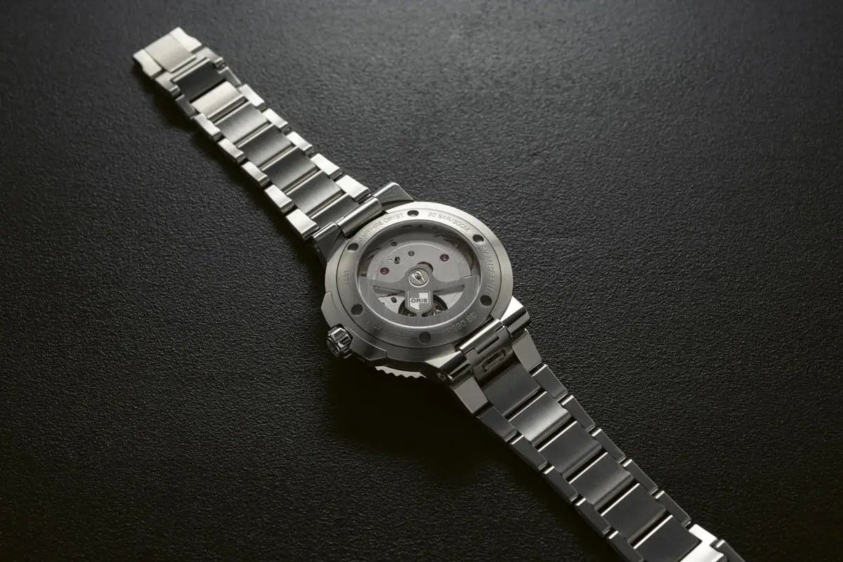 The Aquis models feature an integrated bracelet or rubber strap, distinctive indices and luminescent hands, as well as precision automatic movements, including the in-house calibre Oris 400 with a power reserve of up to 120 hours. The collection also offers complications such as GMT, date, small seconds or depth gauge.
