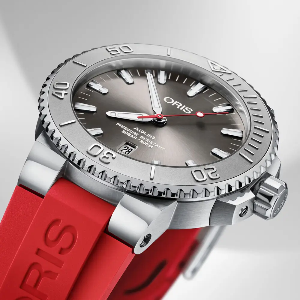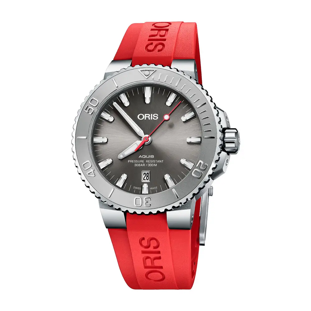 Oris Aquis is the brand's flagship diving collection that combines functionality, rugged construction and modern design. Designed for true underwater deployment, the Aquis collection offers water resistance up to 300 metres, a screw-down crown, unidirectional lunette and high resistance to shock and pressure.