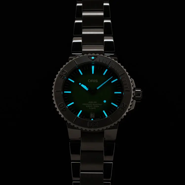 Oris Aquis is the brand's flagship diving collection that combines functionality, rugged construction and modern design. Designed for true underwater deployment, the Aquis collection offers water resistance up to 300 metres, a screw-down crown, unidirectional lunette and high resistance to shock and pressure.