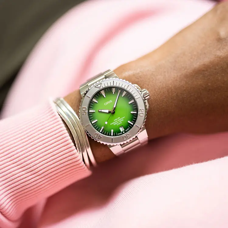 The Oris Aquis is the ideal choice for water sports, adventure and everyday wear enthusiasts looking for a reliable, technically sophisticated and stylishly distinctive watch with Swiss quality and personality.