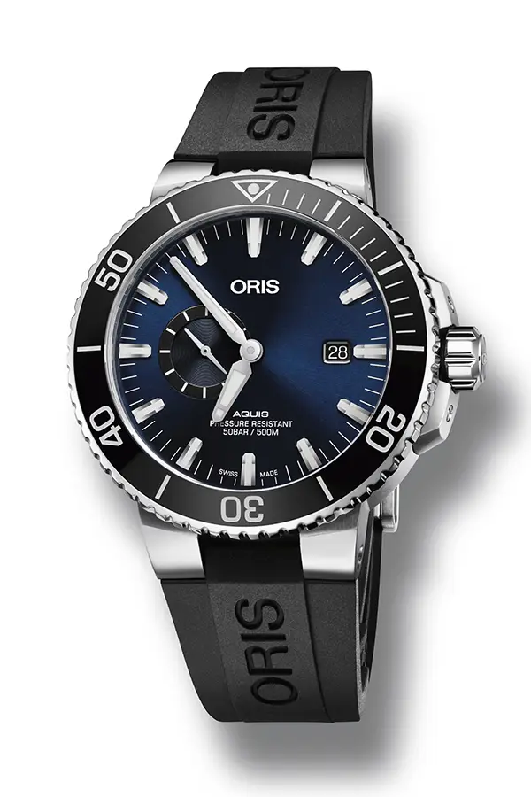 Oris Aquis is the brand's flagship diving collection that combines functionality, rugged construction and modern design. Designed for true underwater deployment, the Aquis collection offers water resistance up to 300 metres, a screw-down crown, unidirectional lunette and high resistance to shock and pressure.