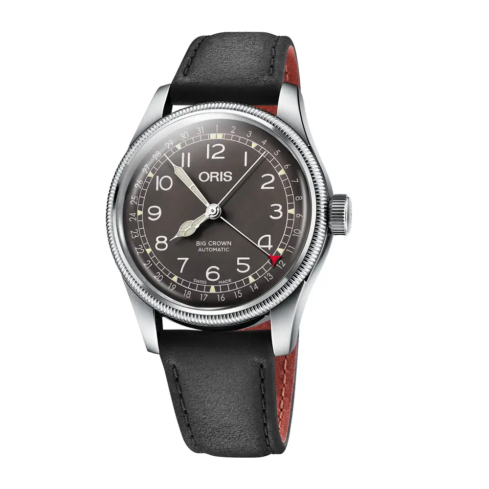 The Oris Big Crown is one of the brand's most iconic collections, introduced in 1938 as a watch for pilots. The distinctive feature is the large scalloped crown, designed to be operated even with gloves - a detail that still refers to the collection's aviation roots.