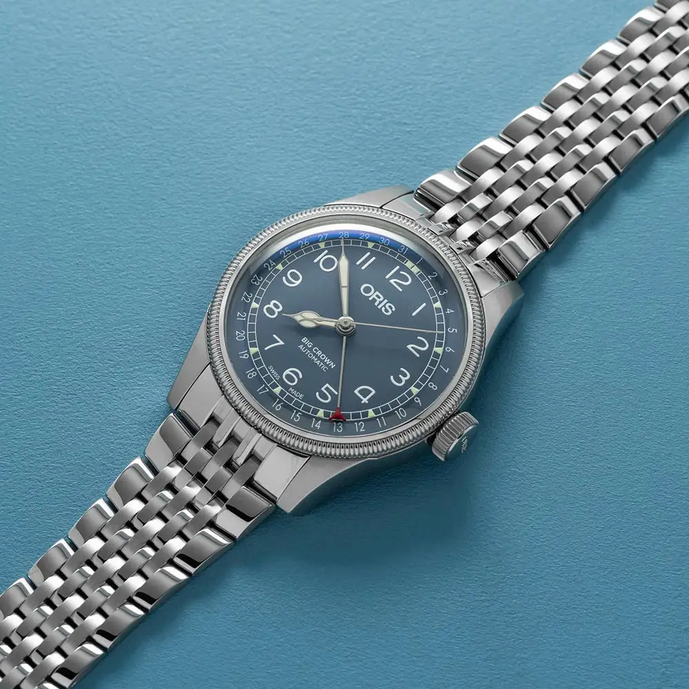 The Oris Big Crown is one of the brand's most iconic collections, introduced in 1938 as a watch for pilots. The distinctive feature is the large scalloped crown, designed to be operated even with gloves - a detail that still refers to the collection's aviation roots.