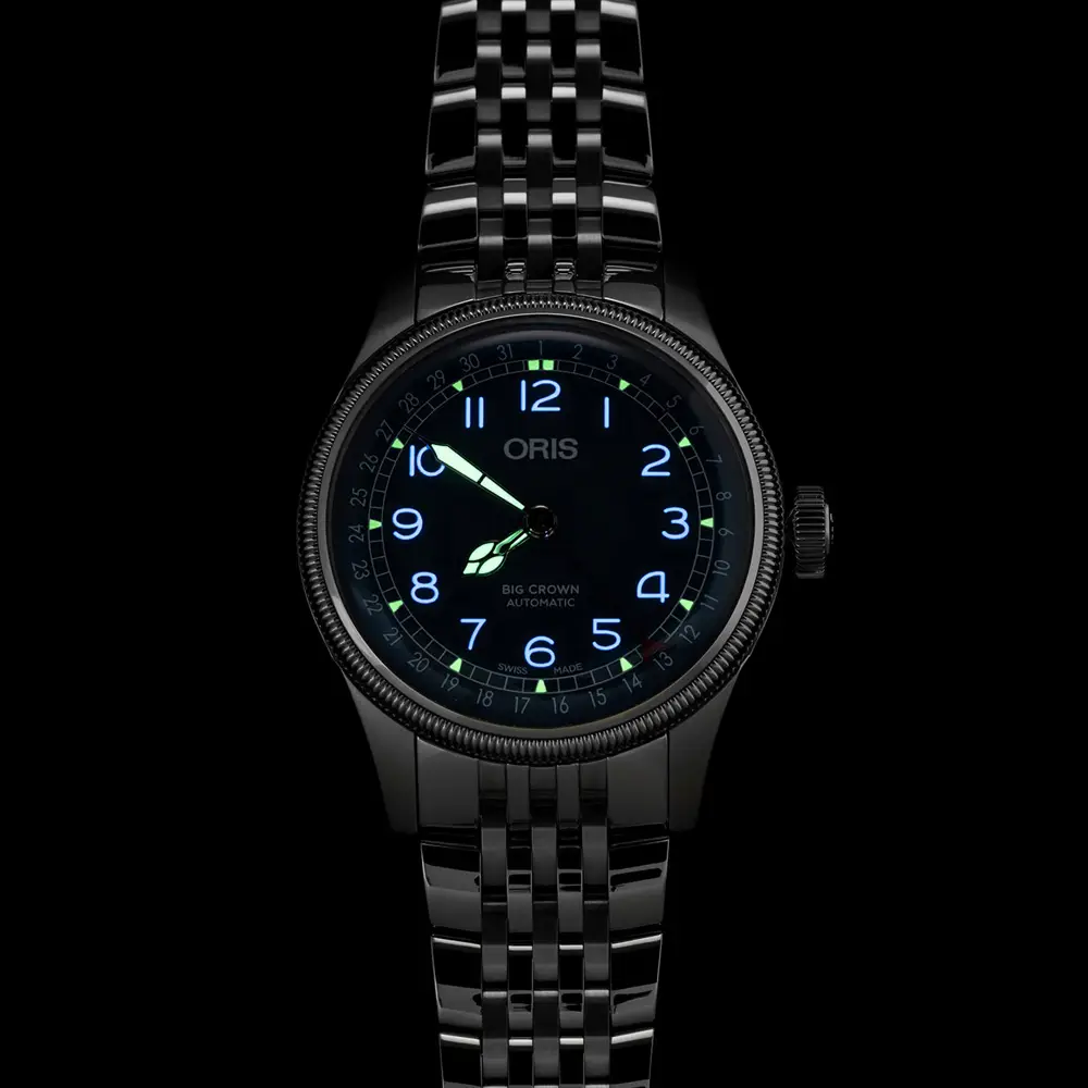 With water resistance up to 50 meters (5 bar) and a stainless-steel bracelet with a brushed and polished finish and butterfly clasp, the Oris Big Crown Pointer Date represents a perfect fusion of timeless design, reliability, and modern craftsmanship — a true classic for everyday wear and refined style.