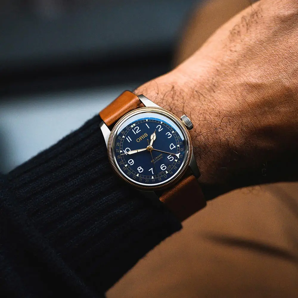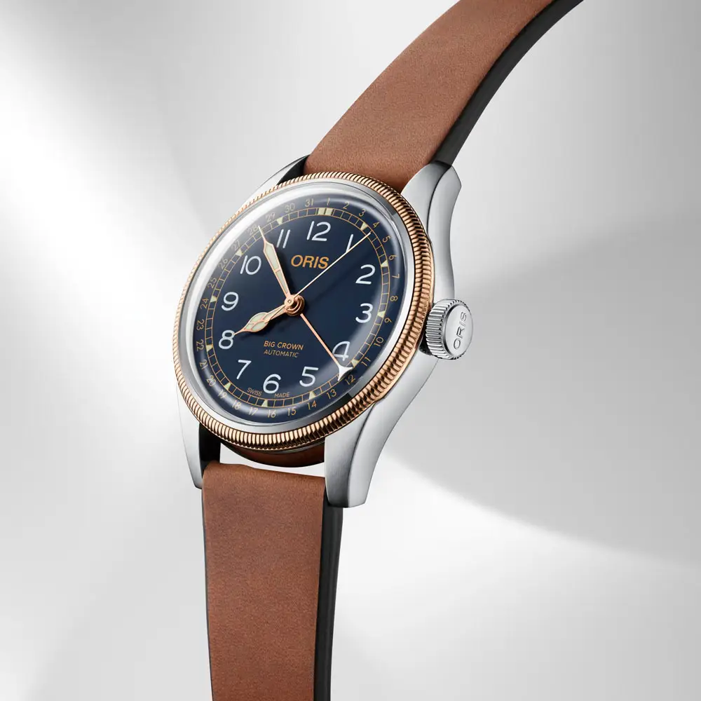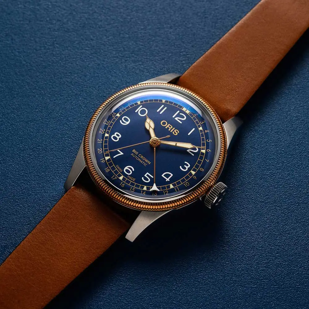 The Oris Big Crown is one of the brand's most iconic collections, introduced in 1938 as a watch for pilots. The distinctive feature is the large scalloped crown, designed to be operated even with gloves - a detail that still refers to the collection's aviation roots.