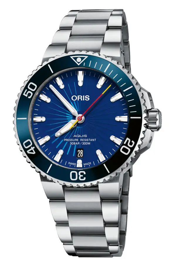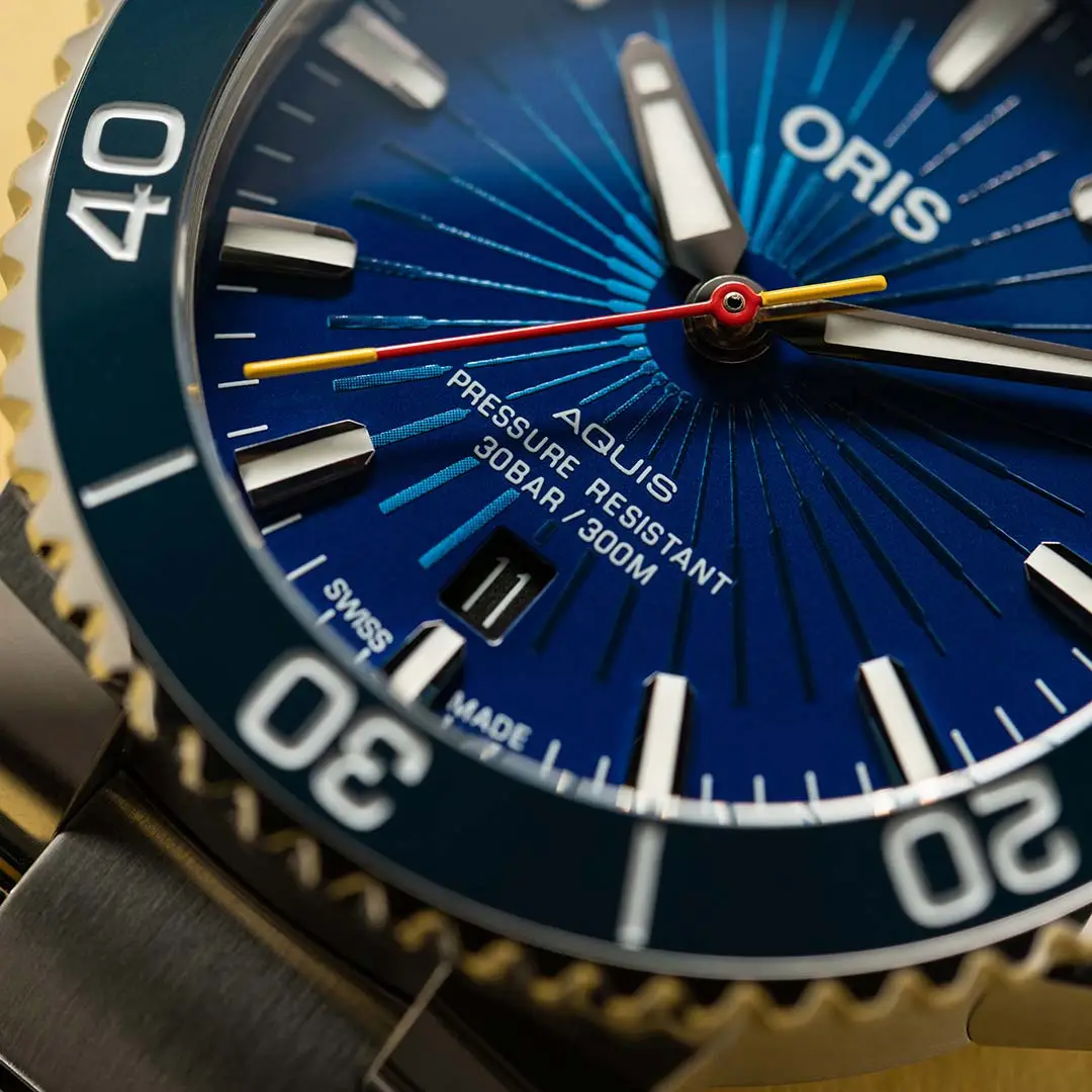Oris Aquis is the brand's flagship diving collection that combines functionality, rugged construction and modern design. Designed for true underwater deployment, the Aquis collection offers water resistance up to 300 metres, a screw-down crown, unidirectional lunette and high resistance to shock and pressure.