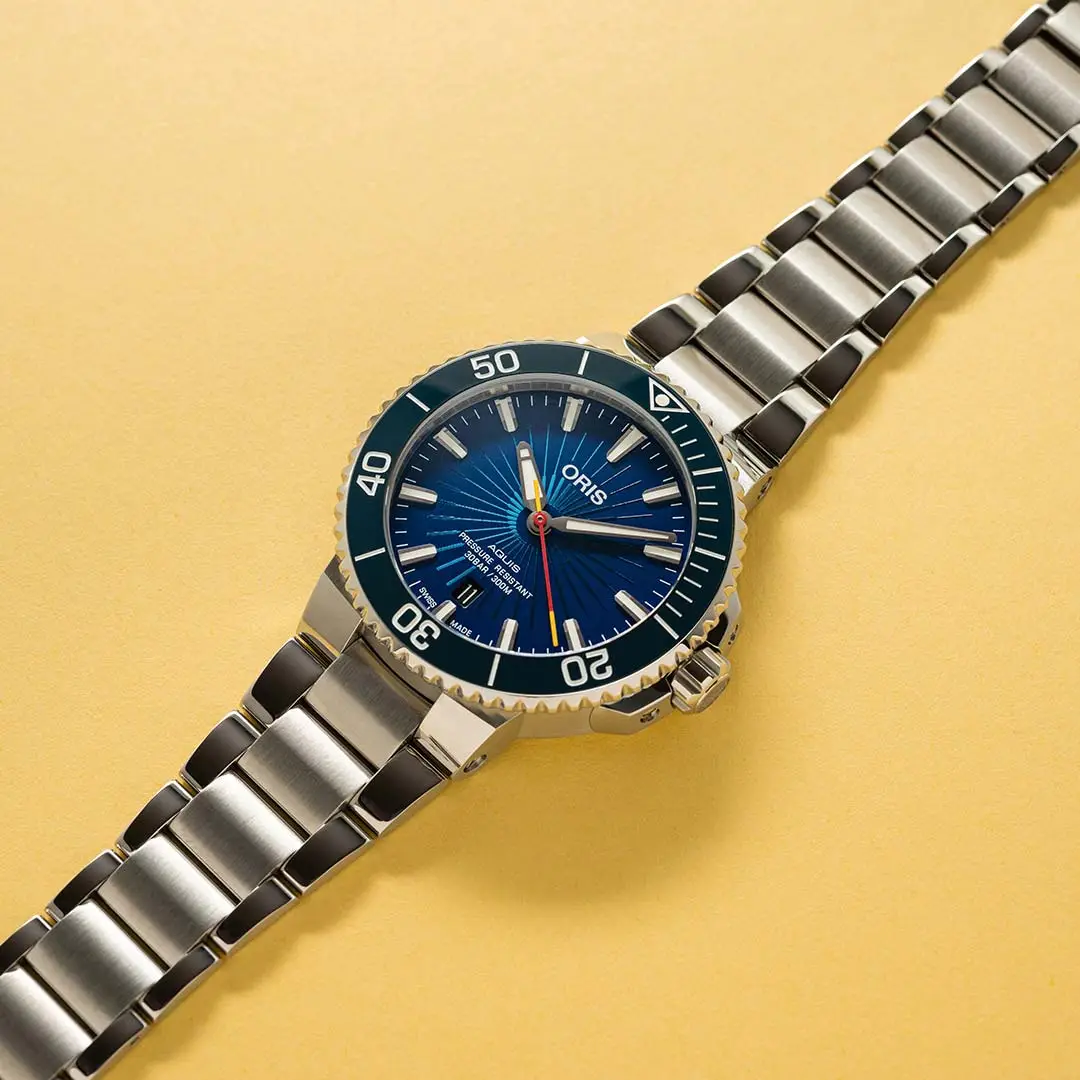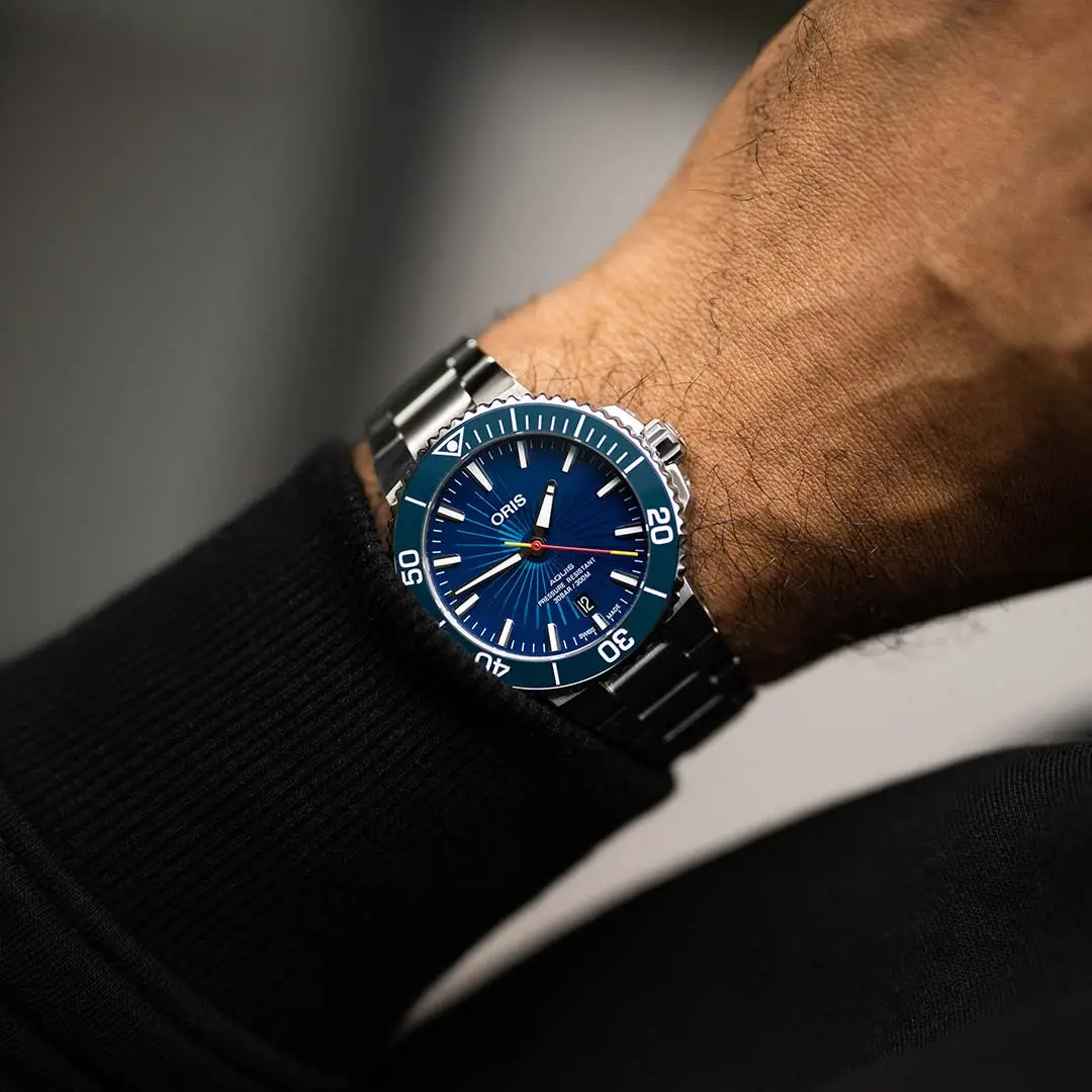 The Oris Aquis is the ideal choice for water sports, adventure and everyday wear enthusiasts looking for a reliable, technically sophisticated and stylishly distinctive watch with Swiss quality and personality.