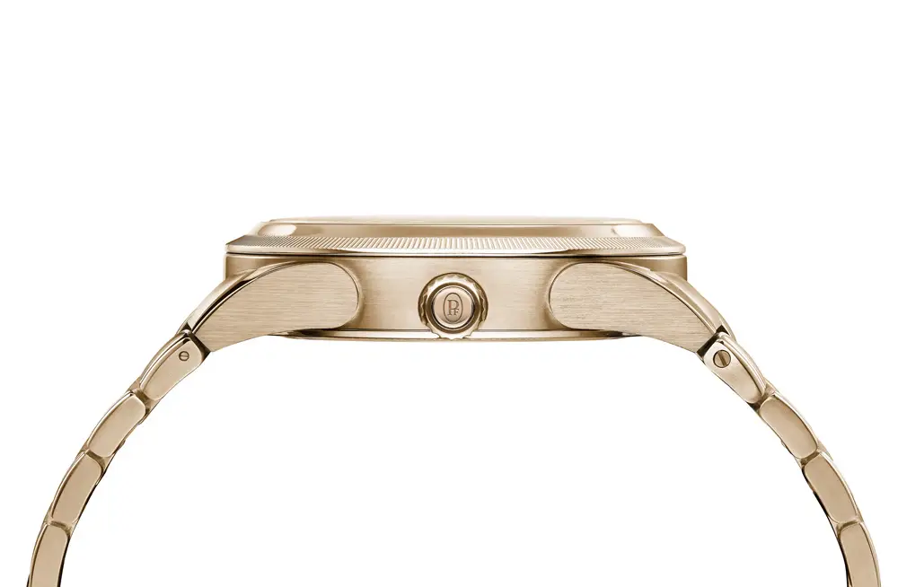 The model is completed with an integrated 18kt rose gold bracelet with a fold-over clasp and offers a water resistance of 60 meters. This elegant and technically advanced travel model is designed for collectors and lovers of haute horlogerie who appreciate the combination of discreet complication and sophisticated craftsmanship.