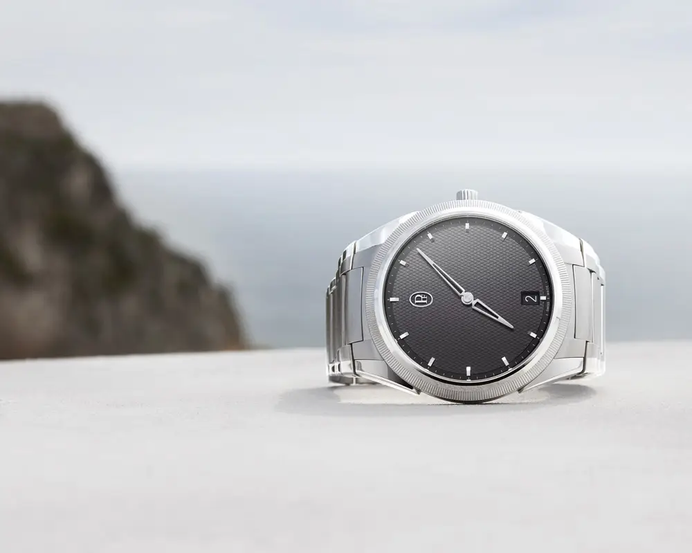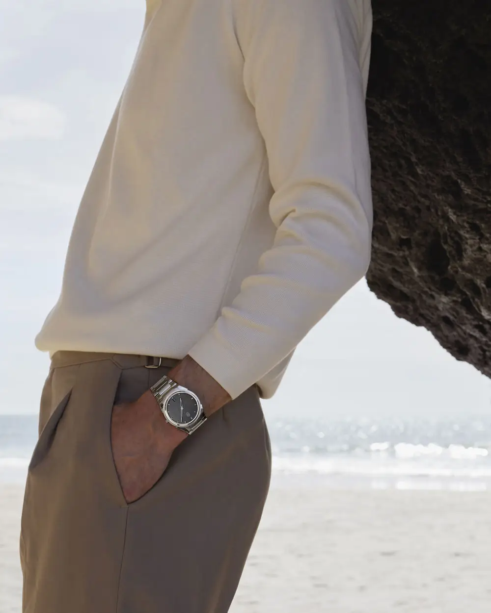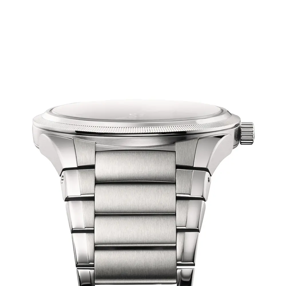 The watch includes an integrated stainless steel bracelet, which seamlessly connects to the case and ensures high wearing comfort. With a water resistance of 100 meters, it is ideal not only for formal occasions but also for everyday style. This model will appeal to those who seek minimalism, technical mastery and timeless design.