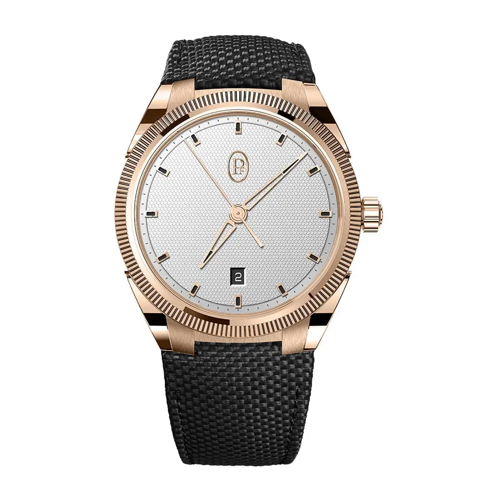 The Parmigiani Fleurier Tonda PF Sport Automatic perfectly balances refined sportiness with haute horlogerie craftsmanship. Its 41 mm case in 18kt rose gold is adorned with a finely knurled bezel featuring 160 notches, reflecting the meticulous precision and understated luxury that define Parmigiani Fleurier.