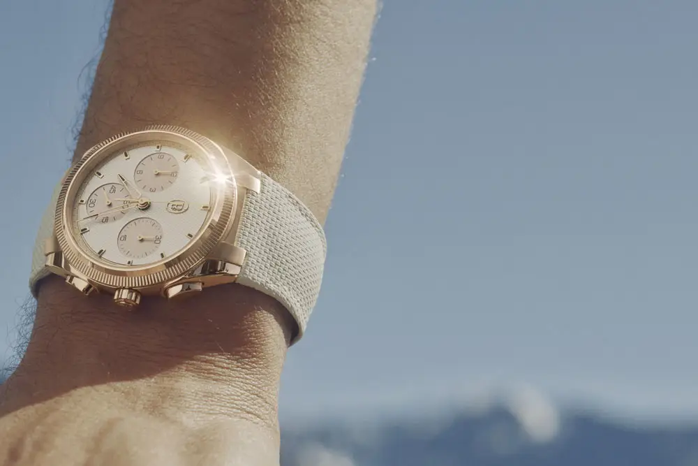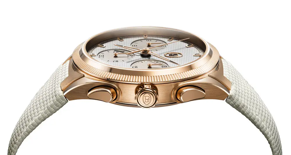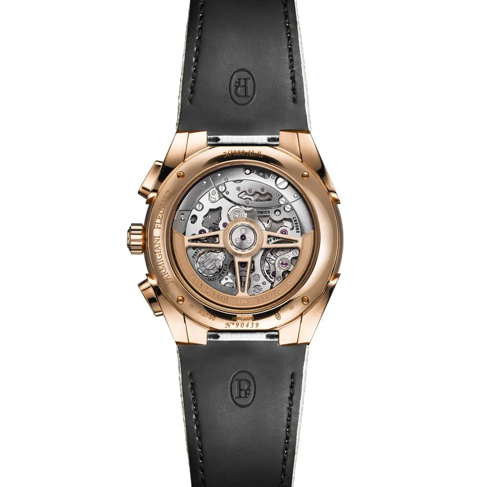 Powered by the automatic PF070 calibre, the watch offers chronograph functionality, a 65-hour power reserve, and refined finishing visible through the sapphire case back. The movement runs at a high frequency of 36,000 vibrations per hour, ensuring precision and reliability.