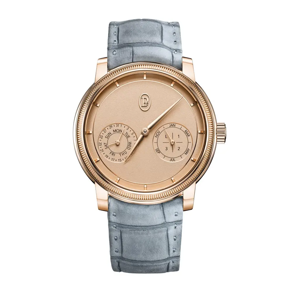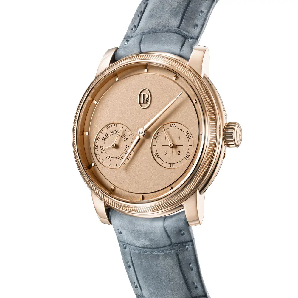 At its heart beats the in-house Caliber PF733, hand-wound, composed of 265 components and set with 29 jewels. Operating at 4 Hz, it provides a 60-hour power reserve. The perpetual calendar features date, day, month and leap year, elegantly displayed on two subdials positioned at 4 and 8 o’clock, ensuring balance and legibility.