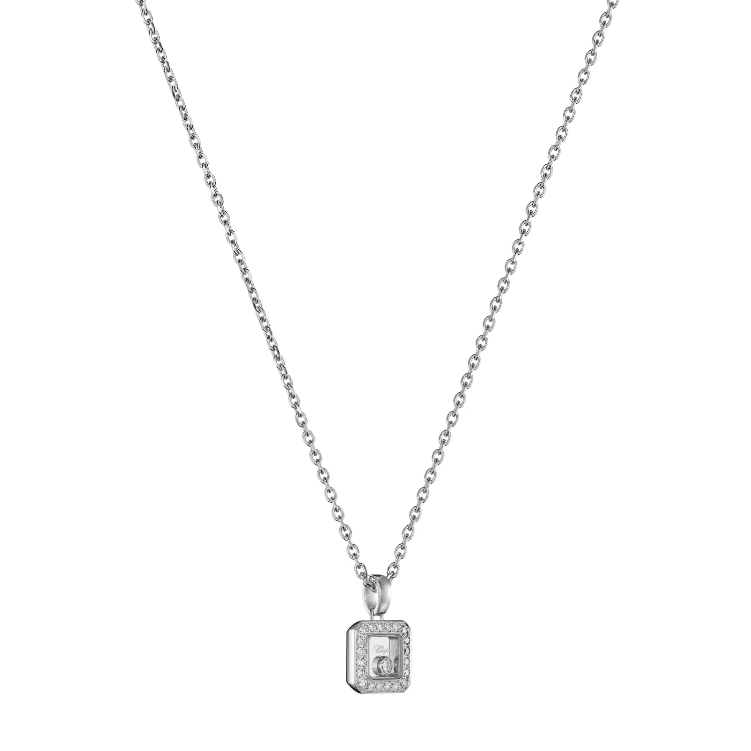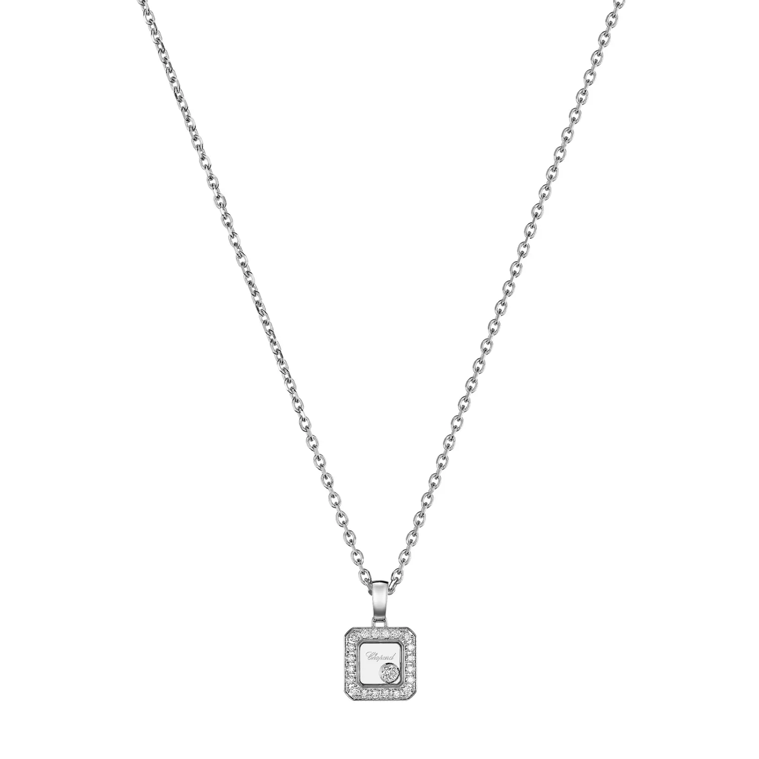 The Chopard Happy Diamonds Necklace 79A114-1201 is a masterful fusion of elegance and fine jewelry craftsmanship, hallmarks of this iconic collection. Crafted from 18 kt white gold (750/1000) with a delicate polished finish, it radiates timeless sophistication. The fine chain necklace, 42 cm long, is flexible and comfortable to wear, perfectly adapting to any neckline.