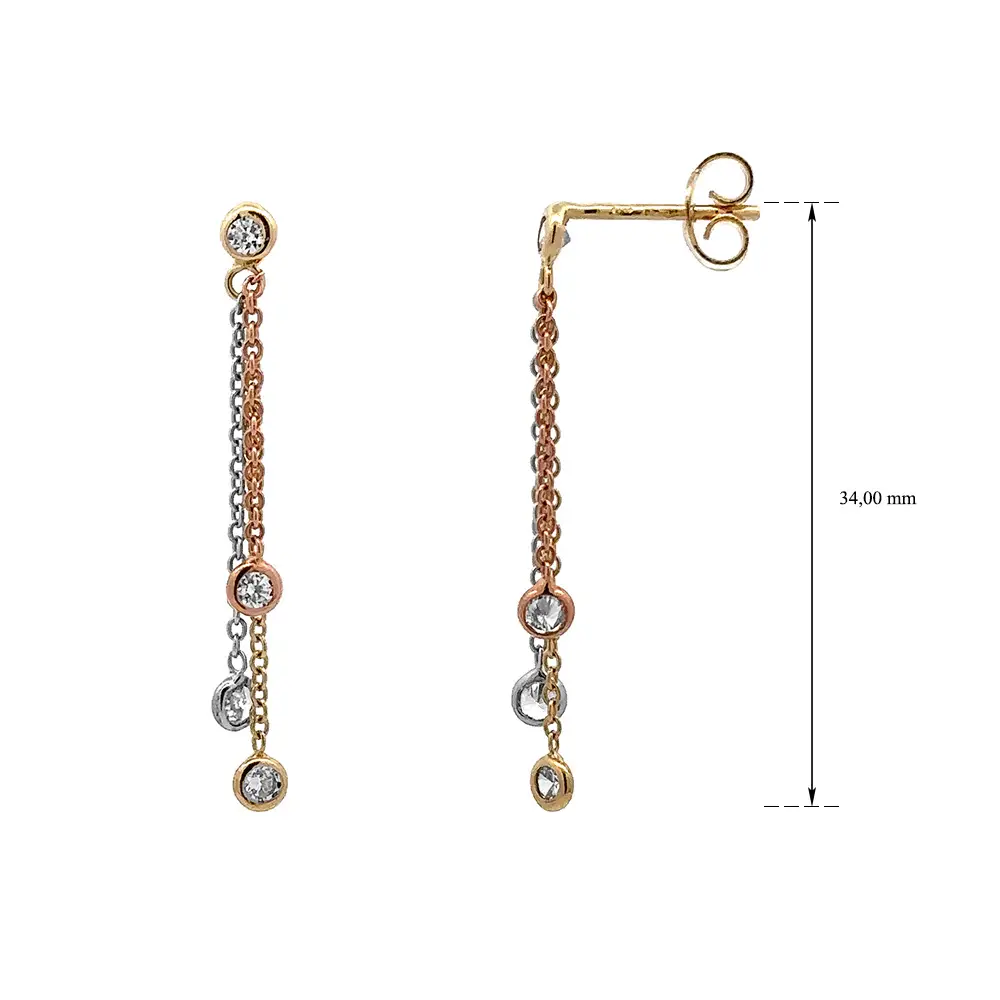 Pendant Earrings with Zircones in Gold