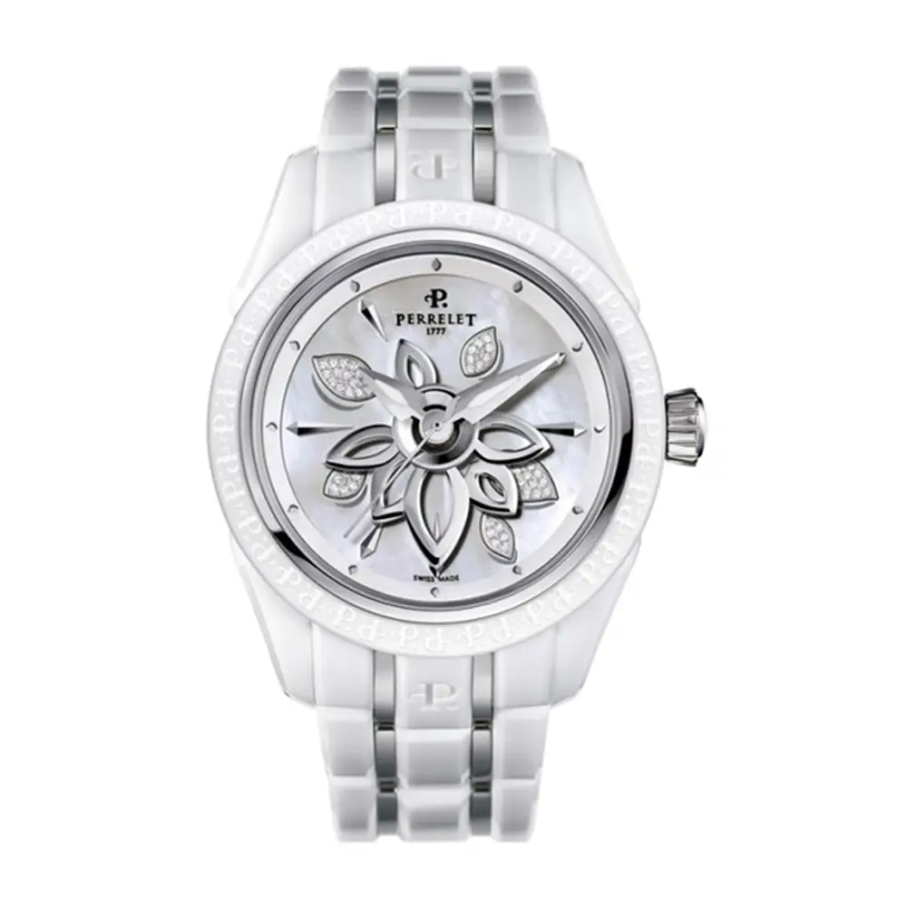At its heart beats a precise Perrelet automatic mechanical movement, offering the authenticity of traditional watchmaking without the need for a battery. With 5 ATM (50 m) water resistance, the watch is well suited for daily activities. The Diamond Flower Ceramic A2039/A is an ideal choice for women seeking elegance, originality, and mechanical craftsmanship.