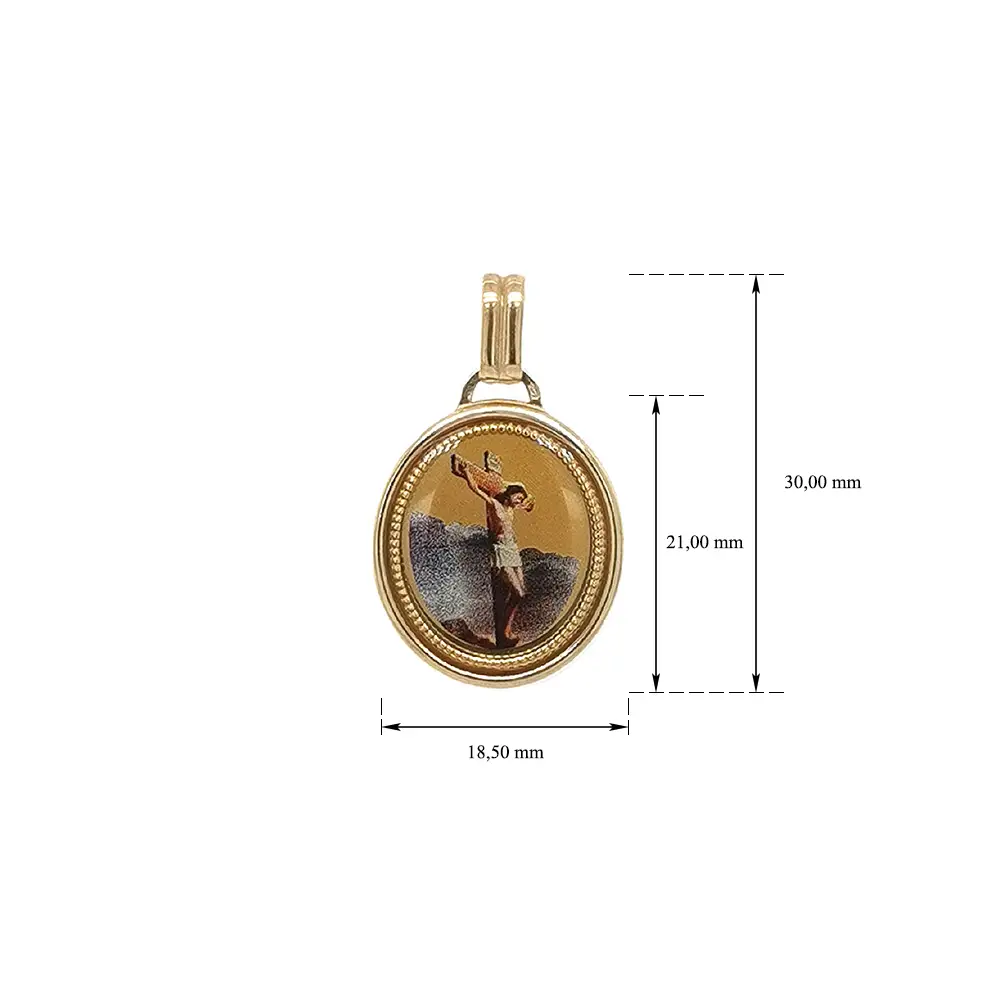 Polished Yellow Gold medallion with Christ on the Cross