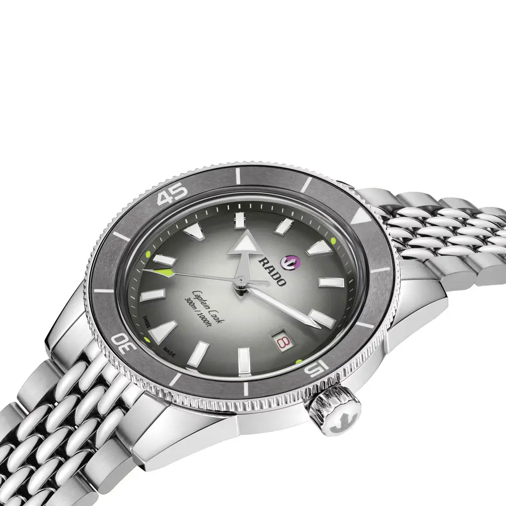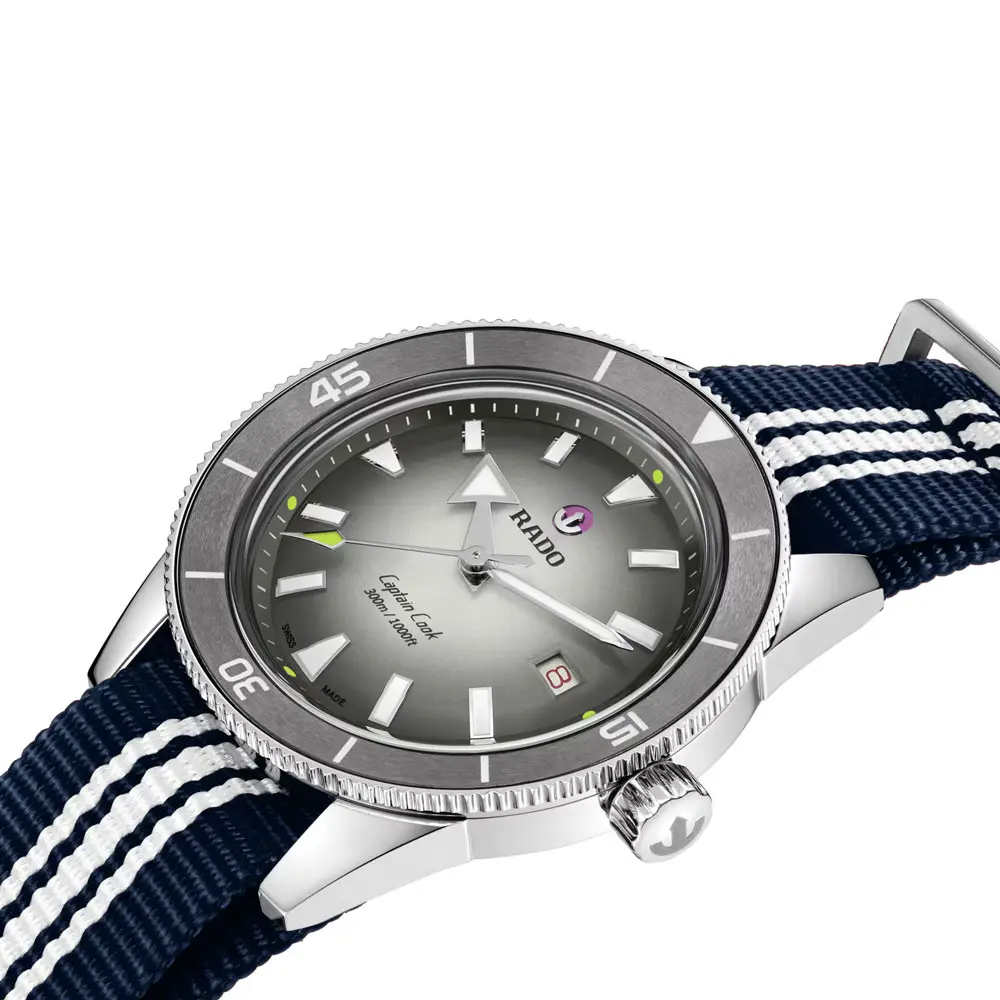 Rado's Captain Cook is an iconic collection that revives the design of late 1960s dive watches combined with today's material innovations and Swiss precision. The original 1962 model inspired the range, which features a vintage aesthetic, a rotating lunette and classic lines, but with a modern twist.