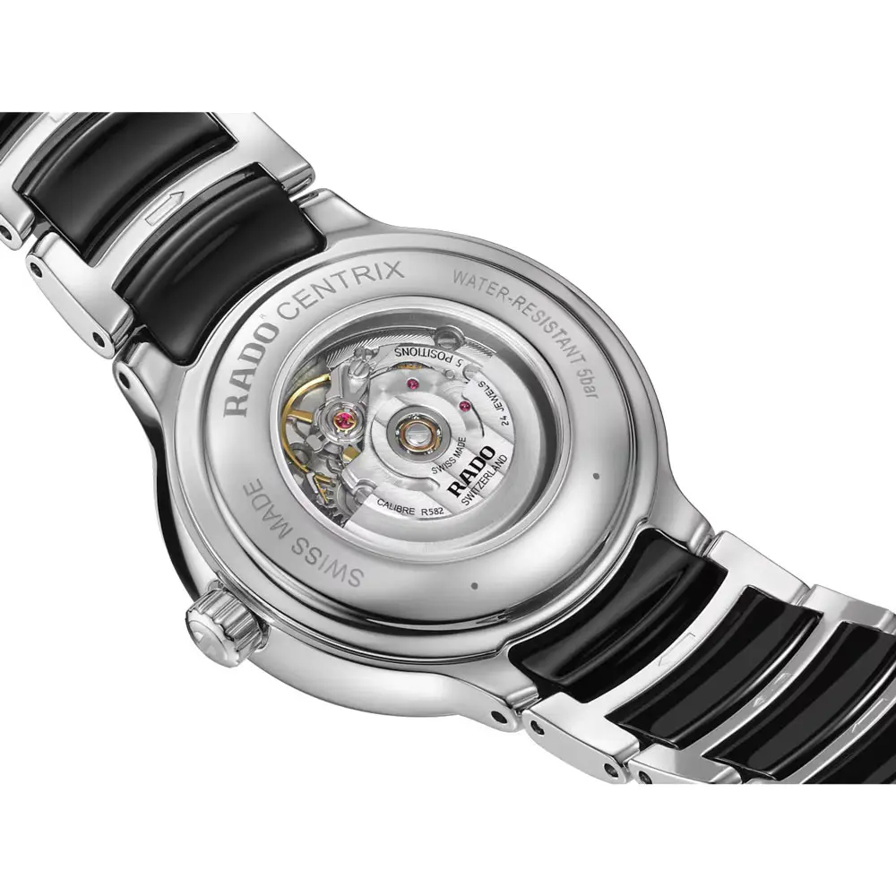 The Centrix Automatic Diamonds model is designed with comfort and versatility in mind. The bracelet combines stainless steel and High-Tech ceramic for a smooth, pleasant feel on the wrist, while water resistance up to 50 metres ensures practicality for daily use. This watch is the perfect choice for women seeking a harmony of elegant design, mechanical precision, and understated luxury.