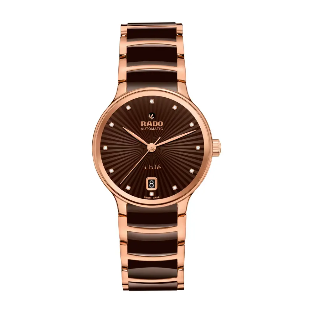 Water-resistant to 50 meters (5 bar) and fitted with an integrated steel and ceramic bracelet with a hidden clasp, the Rado Centrix Automatic Diamonds embodies timeless refinement, technological mastery, and everyday sophistication — a true blend of watchmaking and jewelry art.