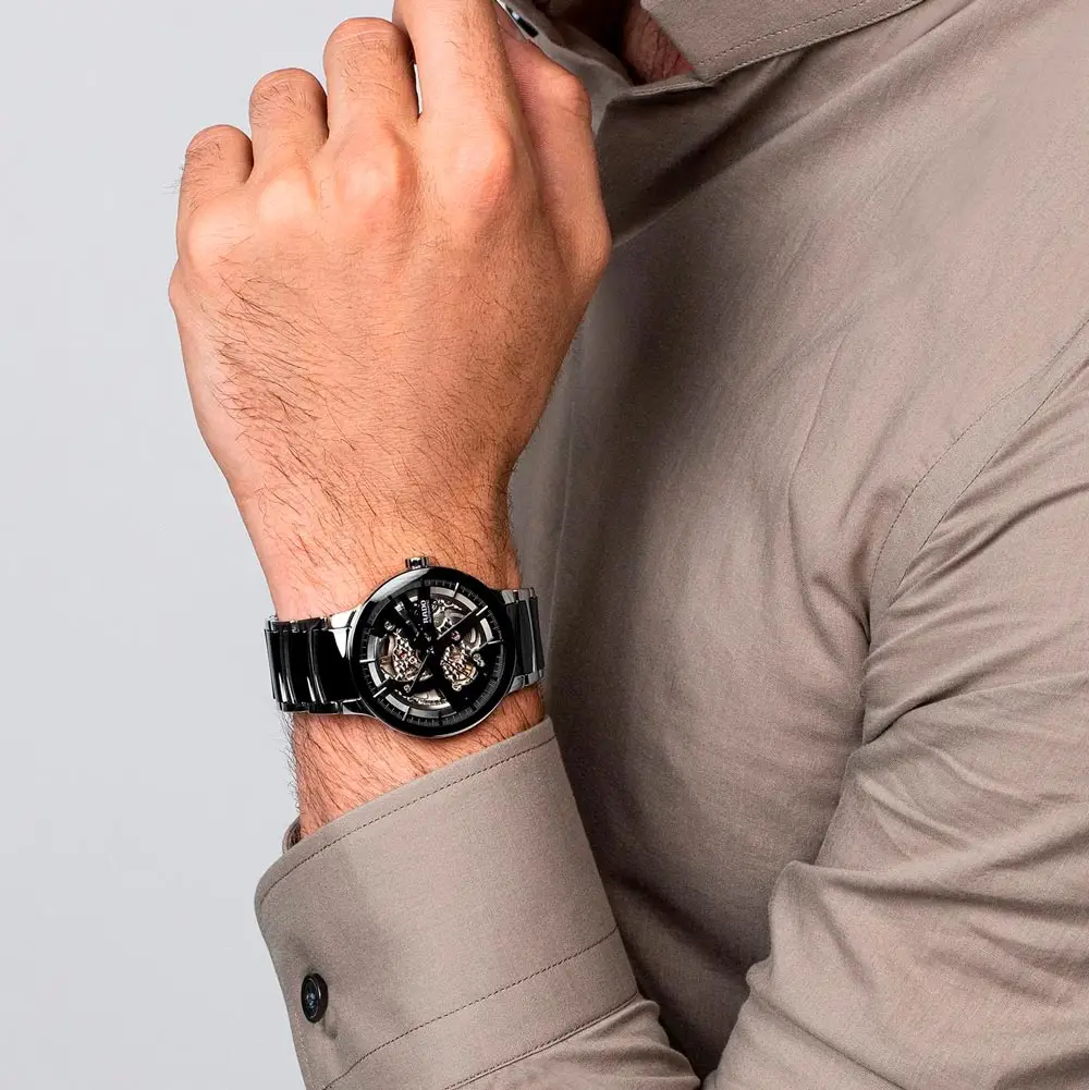 The collection's signature feature is the combination of stainless steel and high-tech ceramic, which gives the watch lightness, durability and a pleasant wearing experience. There are automatic and quartz models, as well as variants with diamond indexes, open dials or skeletonised movements.
