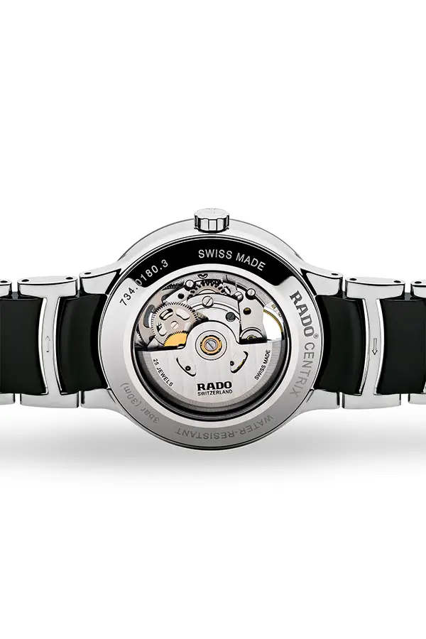 Completing the design is a bracelet combining stainless steel and high-tech ceramic, merging metallic shine with modern innovation for exceptional comfort. The Rado Centrix Automatic Open Heart R30178152 stands as a symbol of refined style and horological sophistication — a timepiece for those who appreciate the harmony of tradition and modern elegance.